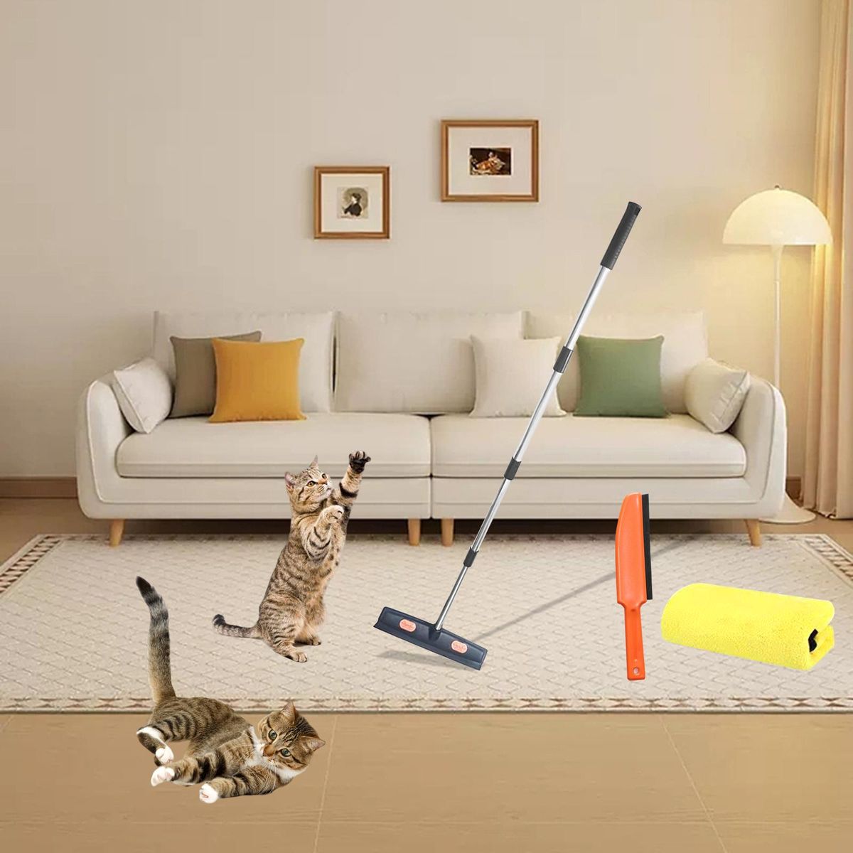 【Telescopic Handle】The pet hair remover broom has 4 sections, can be telescopic after installation, adjustable, for people of different heights.