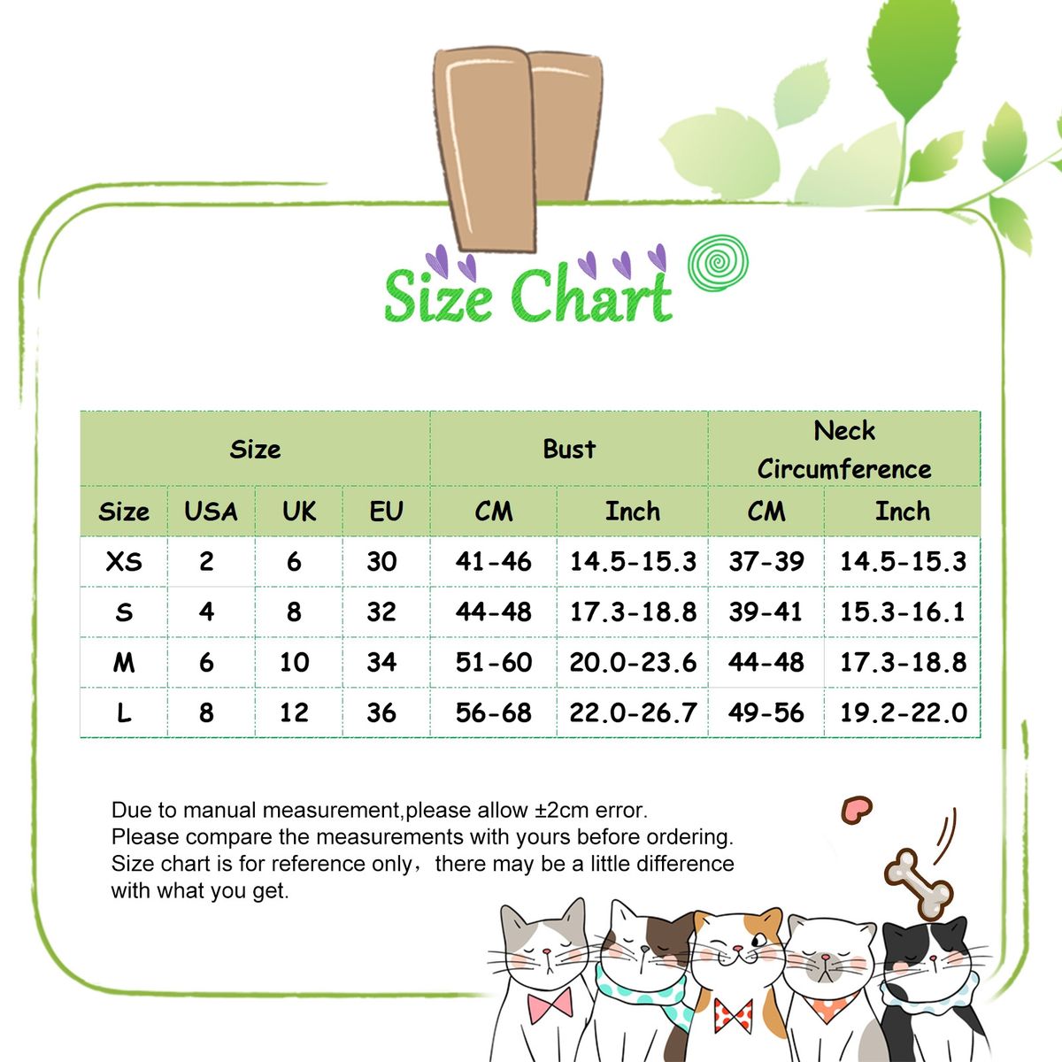Size: XS, Bust Circumference: 41cm-46cm/16.1"-18.1", Neck Circumference: 37cm-39cm/14.6"-15.4" (Approx.)