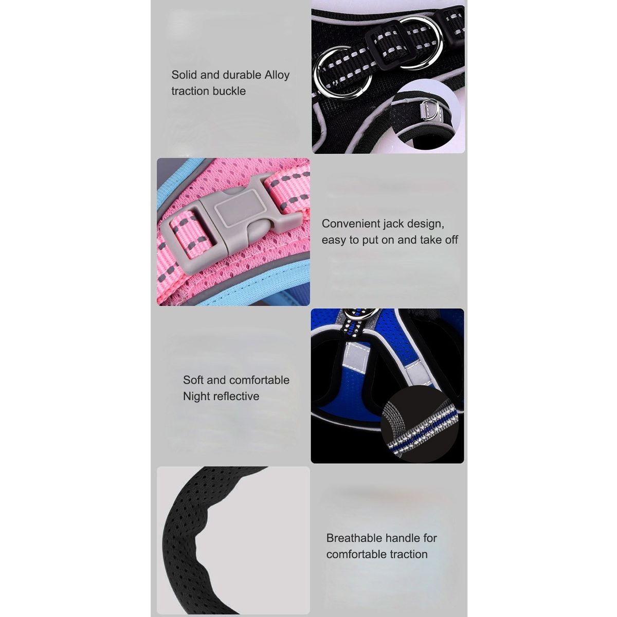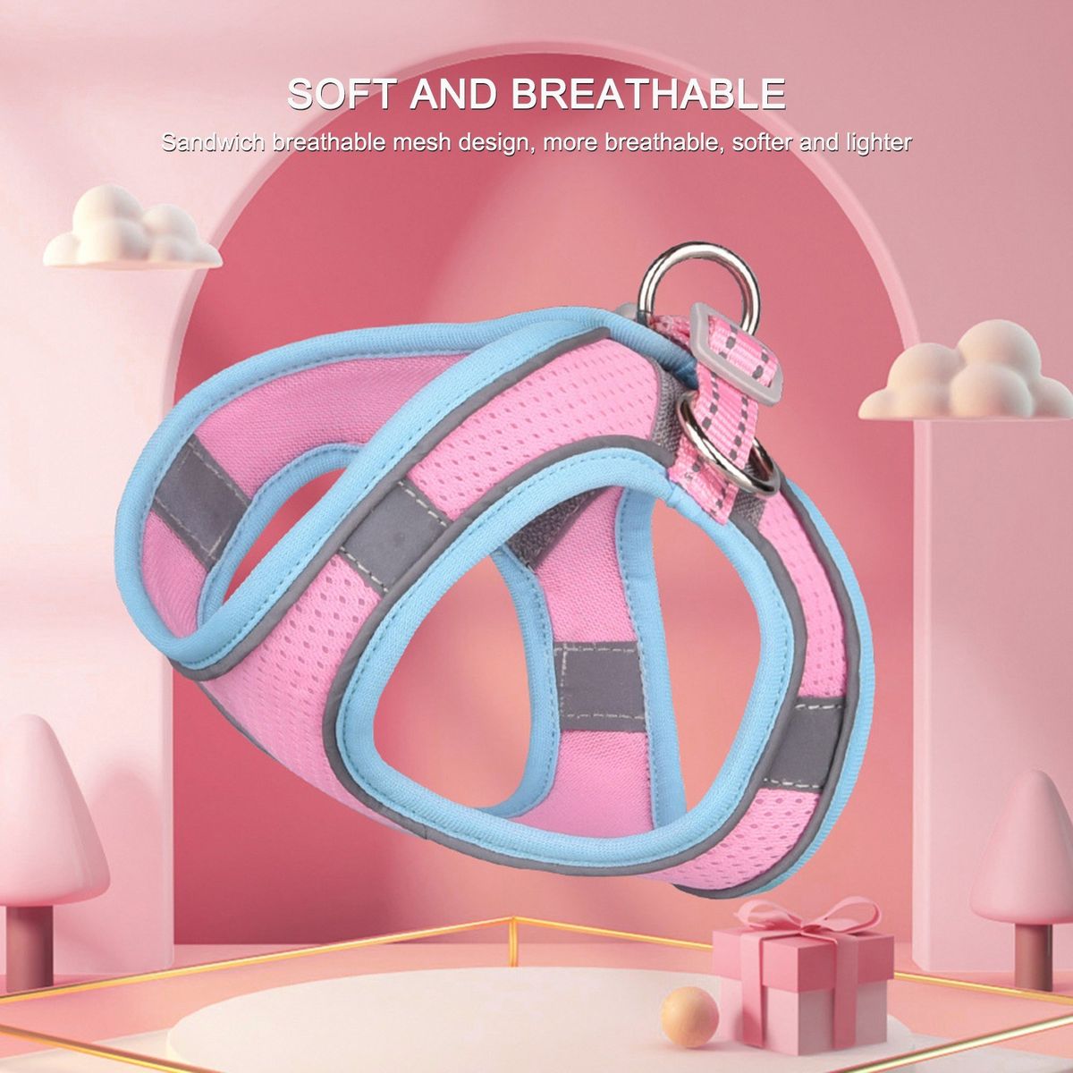 Sandwich breathable mesh design, made of high grade polyester mesh, breathable, your pet is comfortable to wear.