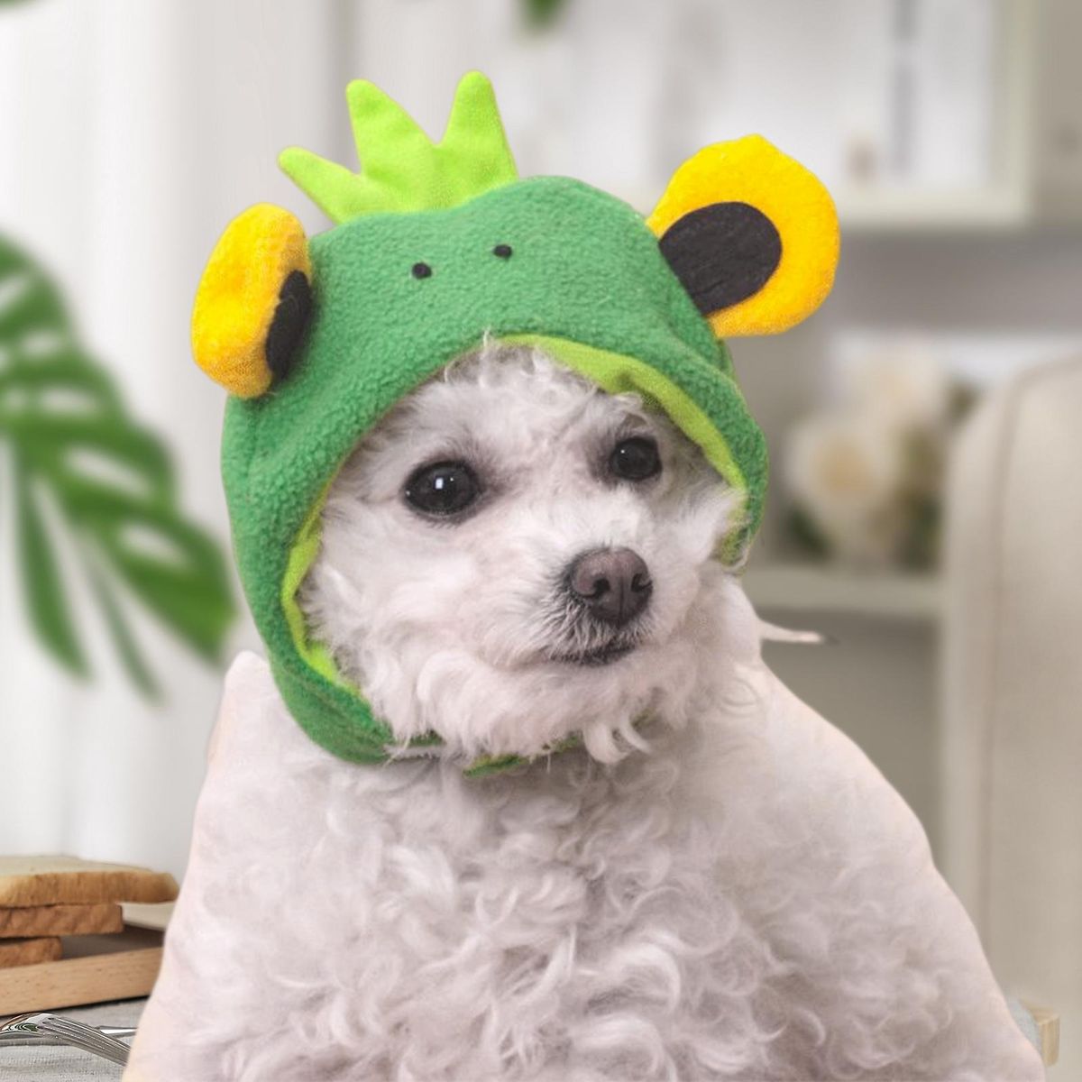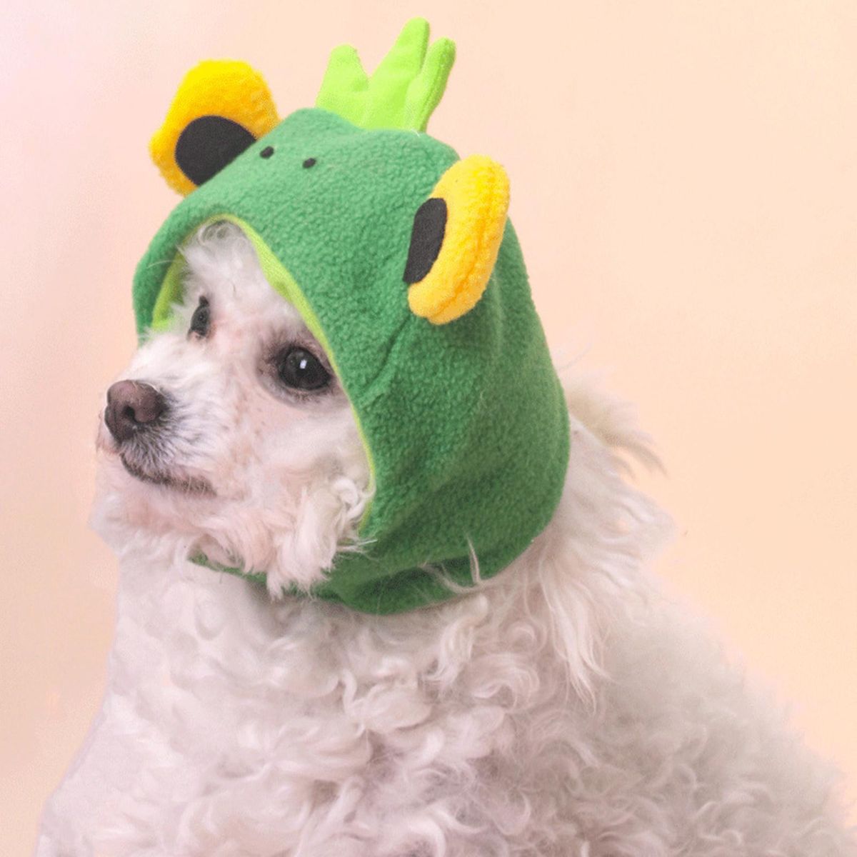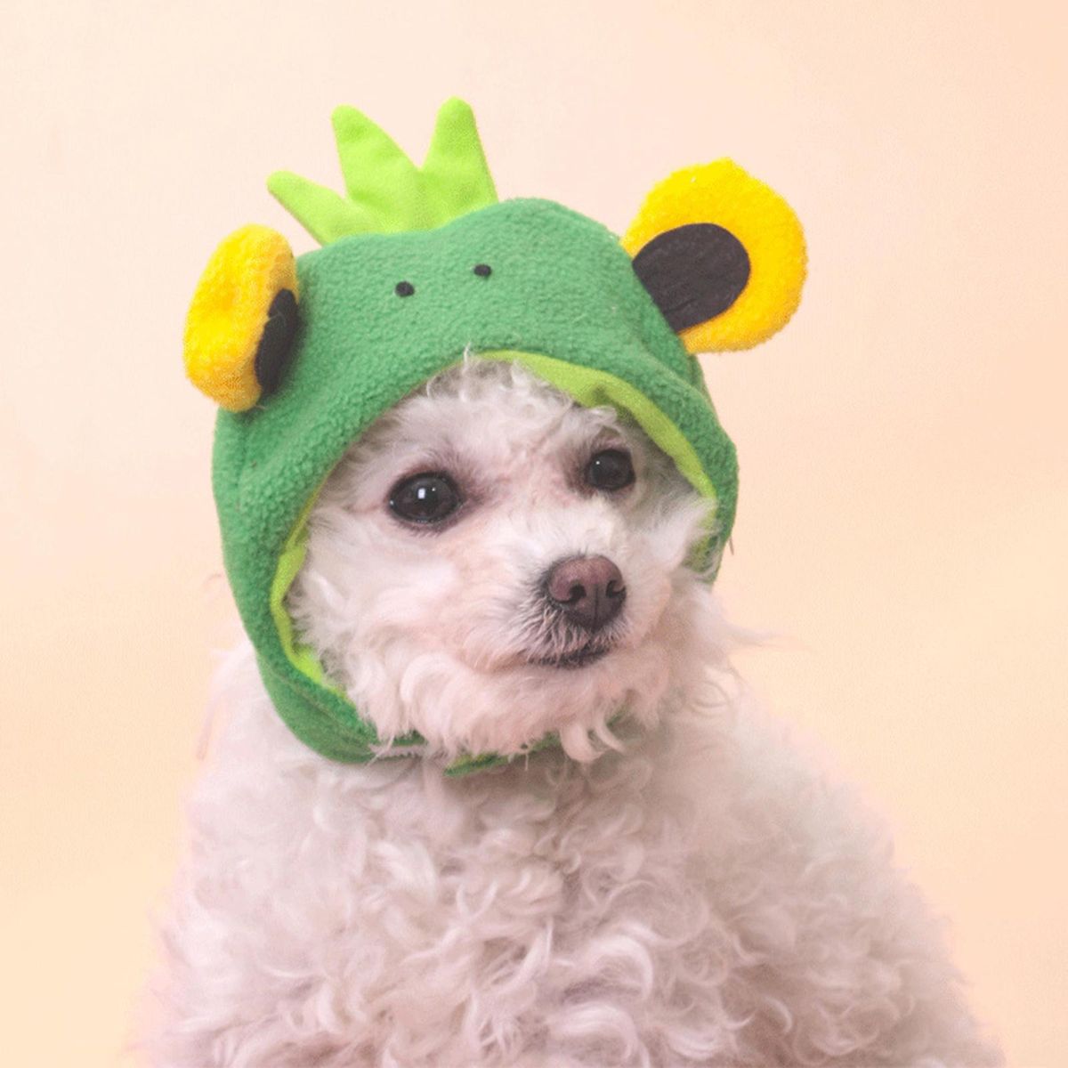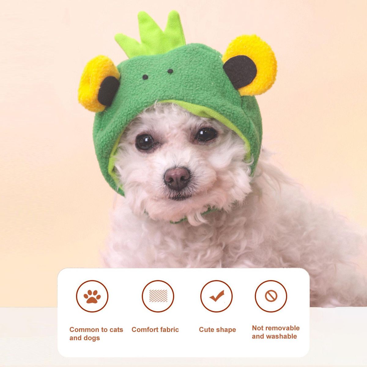 Adopting cute cartoon big eyed frog shape, the headgear is a practical pet dress up prop. And it has soft plush design that help your pet warm in cold weather.