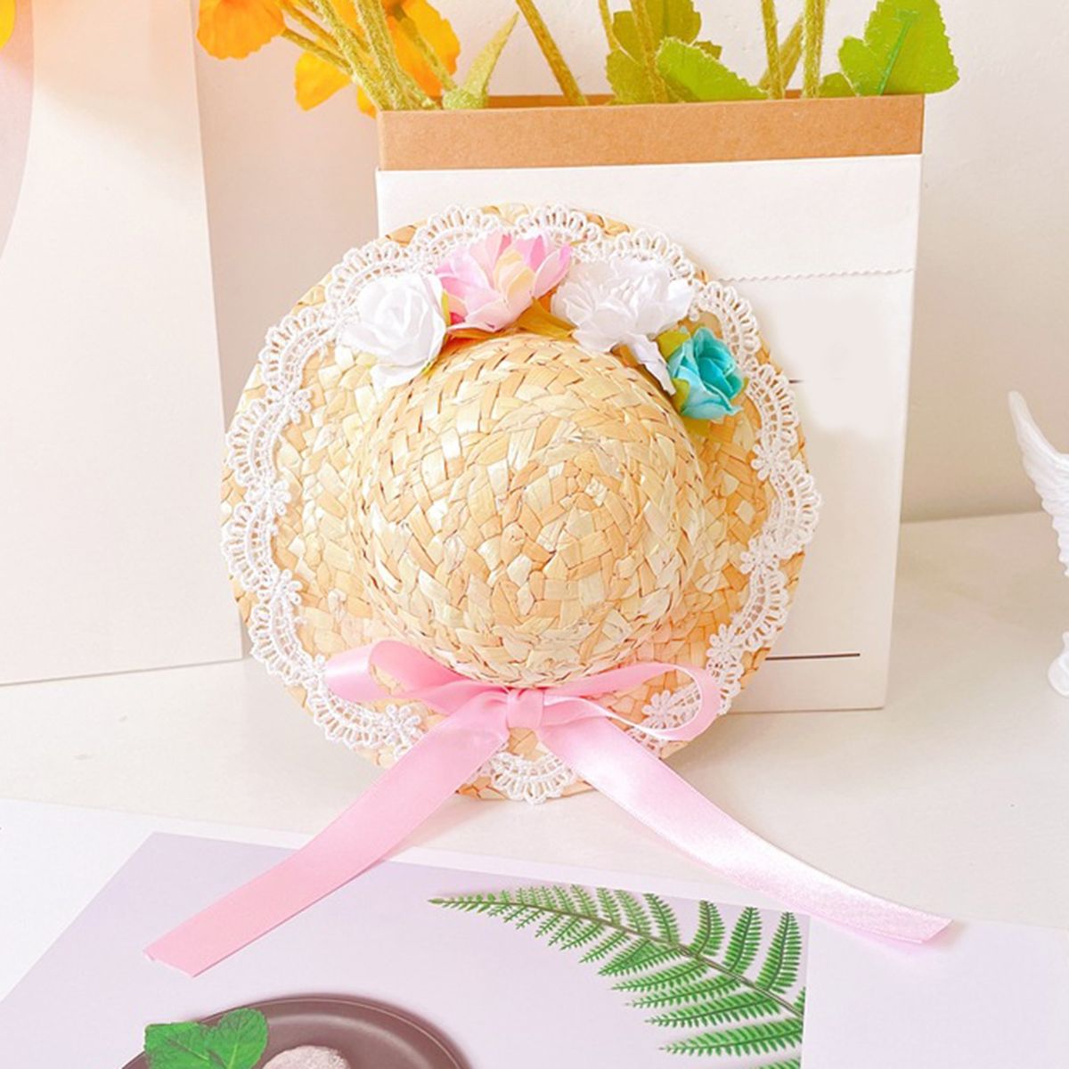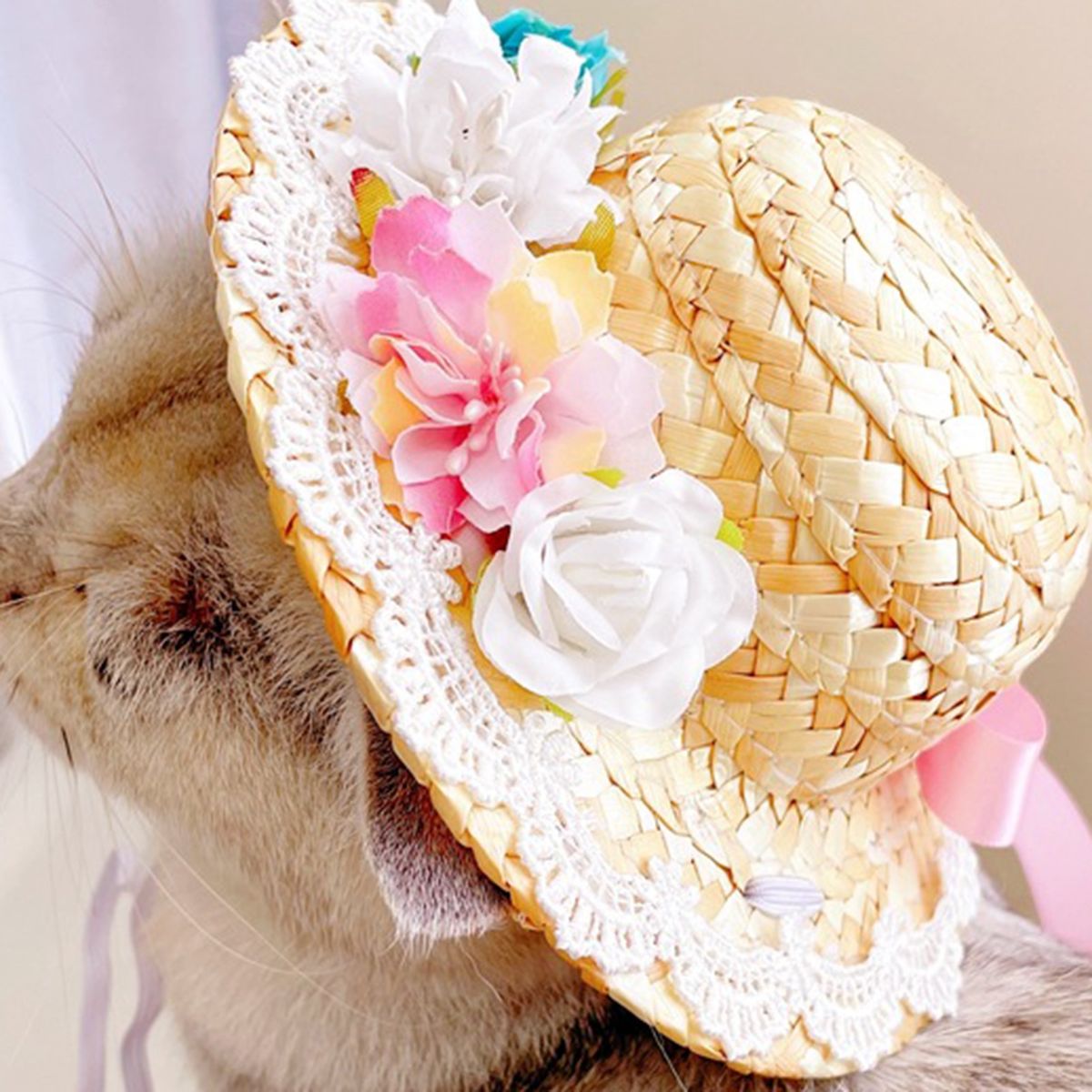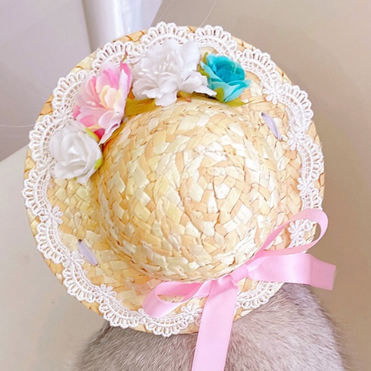 Our pet straw hat can be used as a delicate photography prop for taking a beautiful photo. The design of realistic colorful flower ornaments and bow-knot makes it more attractive and full of charming.