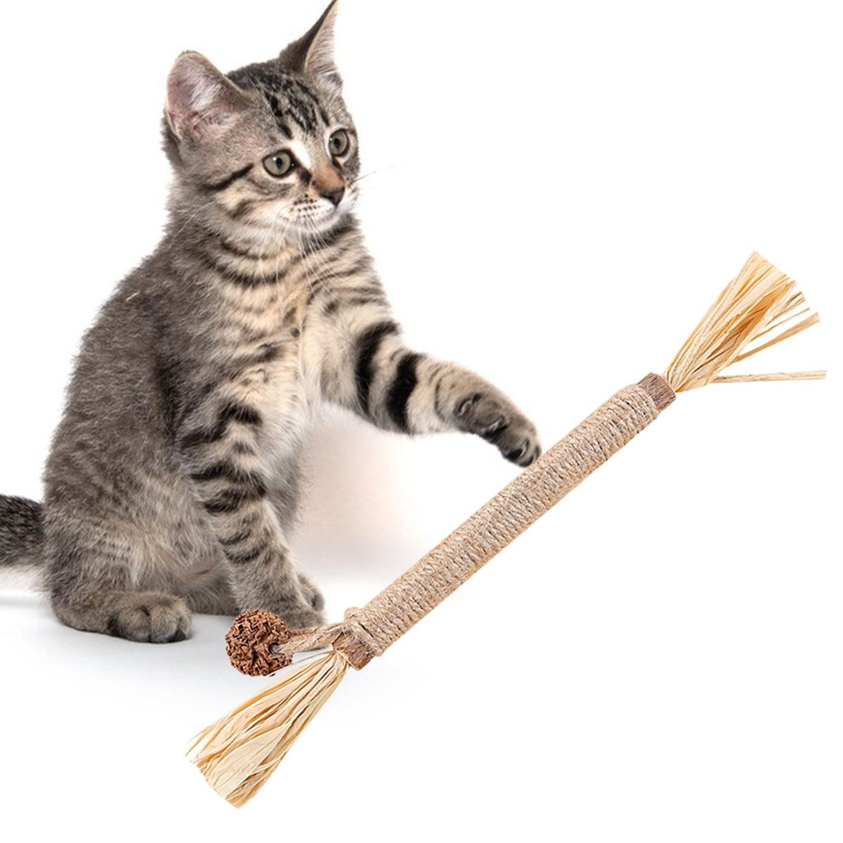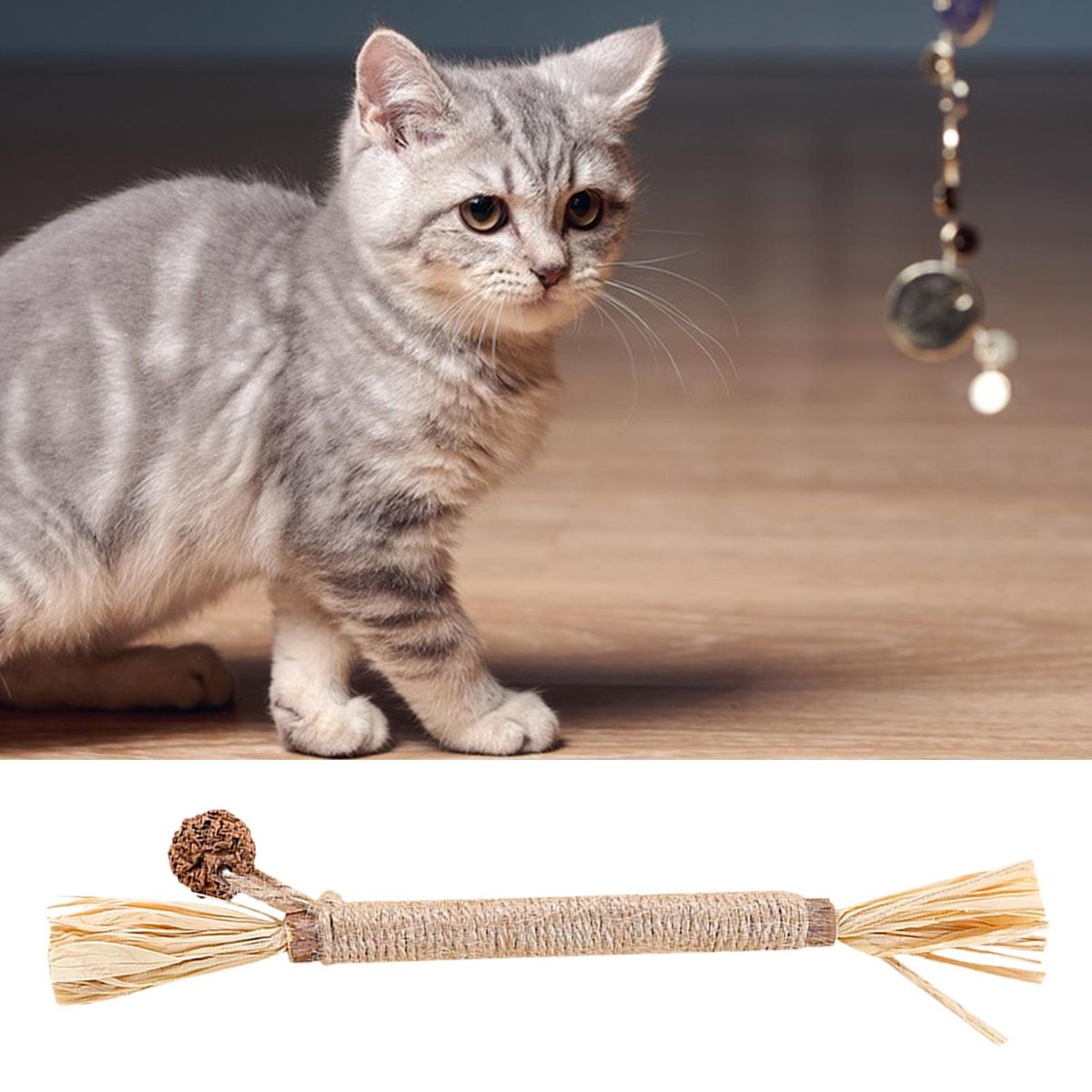 The cat toy with bell, feather, Polygonum wood stick, sisal rope, and bright color, which is easy to attract the cat to play and helps clean pet teeth and prevent dental diseases, bring you and your cat more fun and interaction.