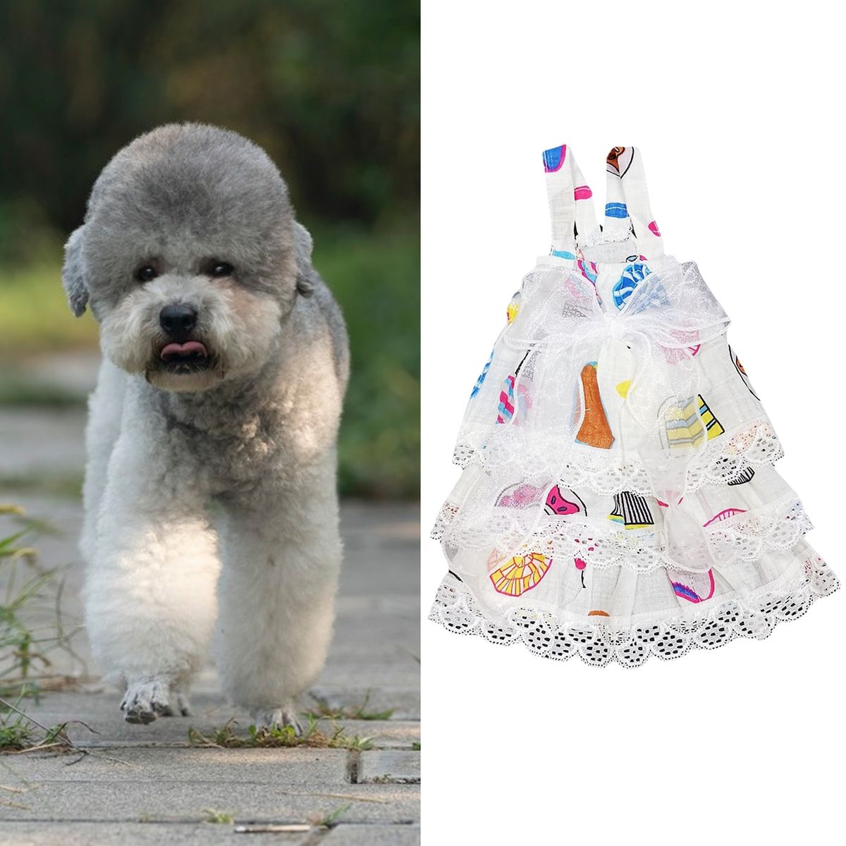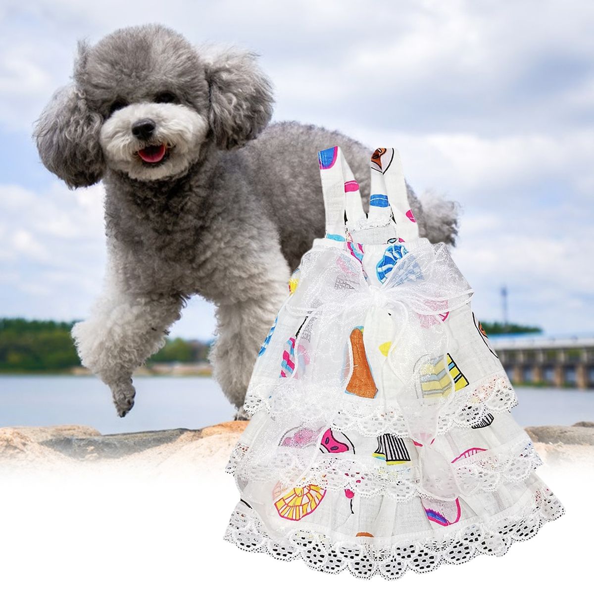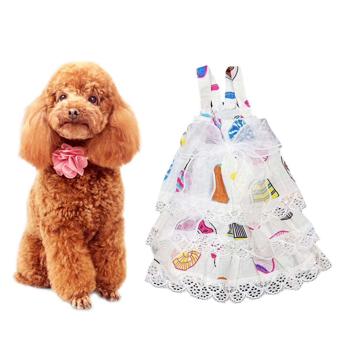 Mainly featuring cartoon patterns, multi-layer hem and bow-knot ornament, the pet dress is ideal for dressing up your lovely pets, making them stand out from the pack when going outdoors or participating in the party.