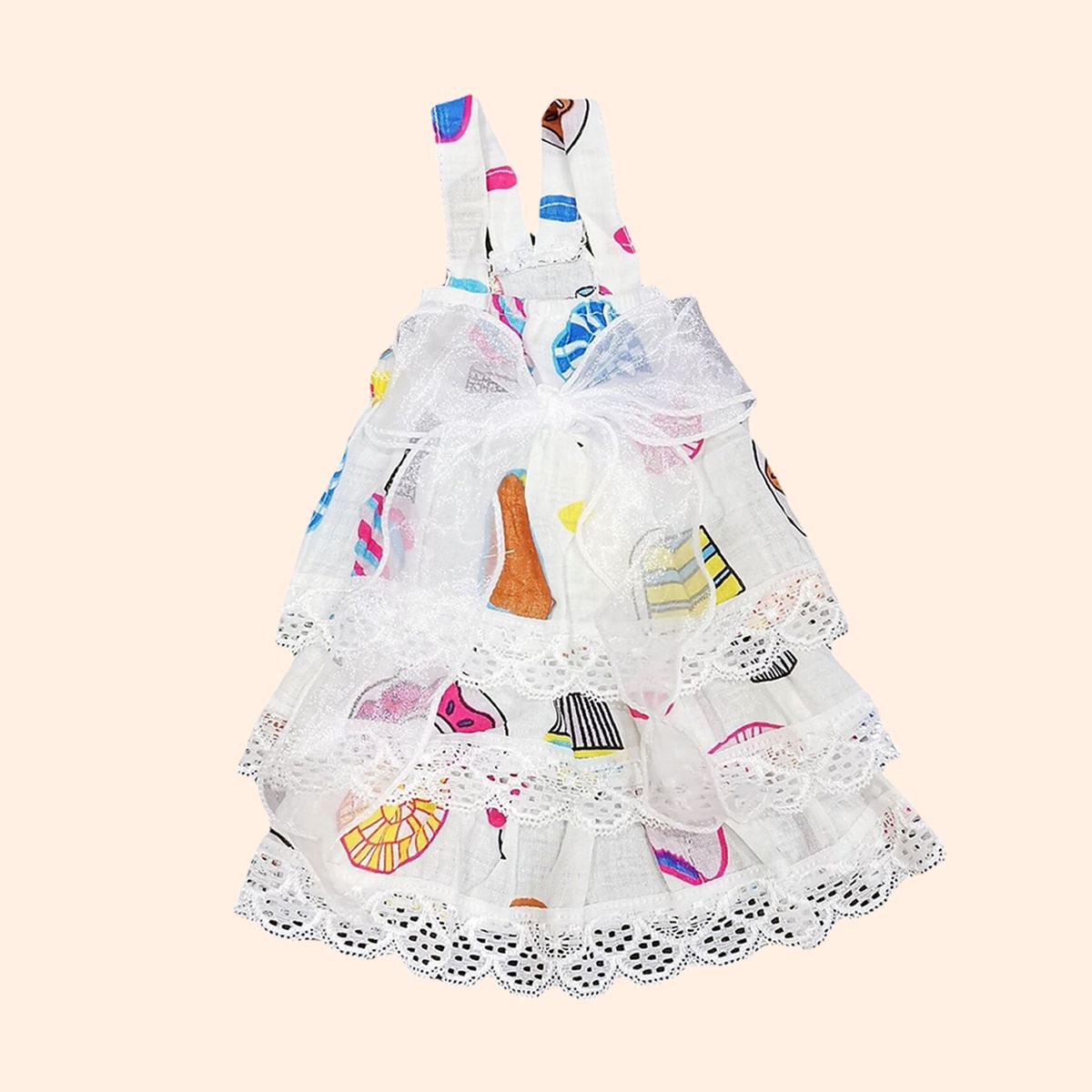 Characterized by cartoon patterns, multi-layer hem and bow-knot ornament, the pet dress is so attractive, eye-catching and unique. It could be your top choice for decorating your lovely pet dogs or cats.