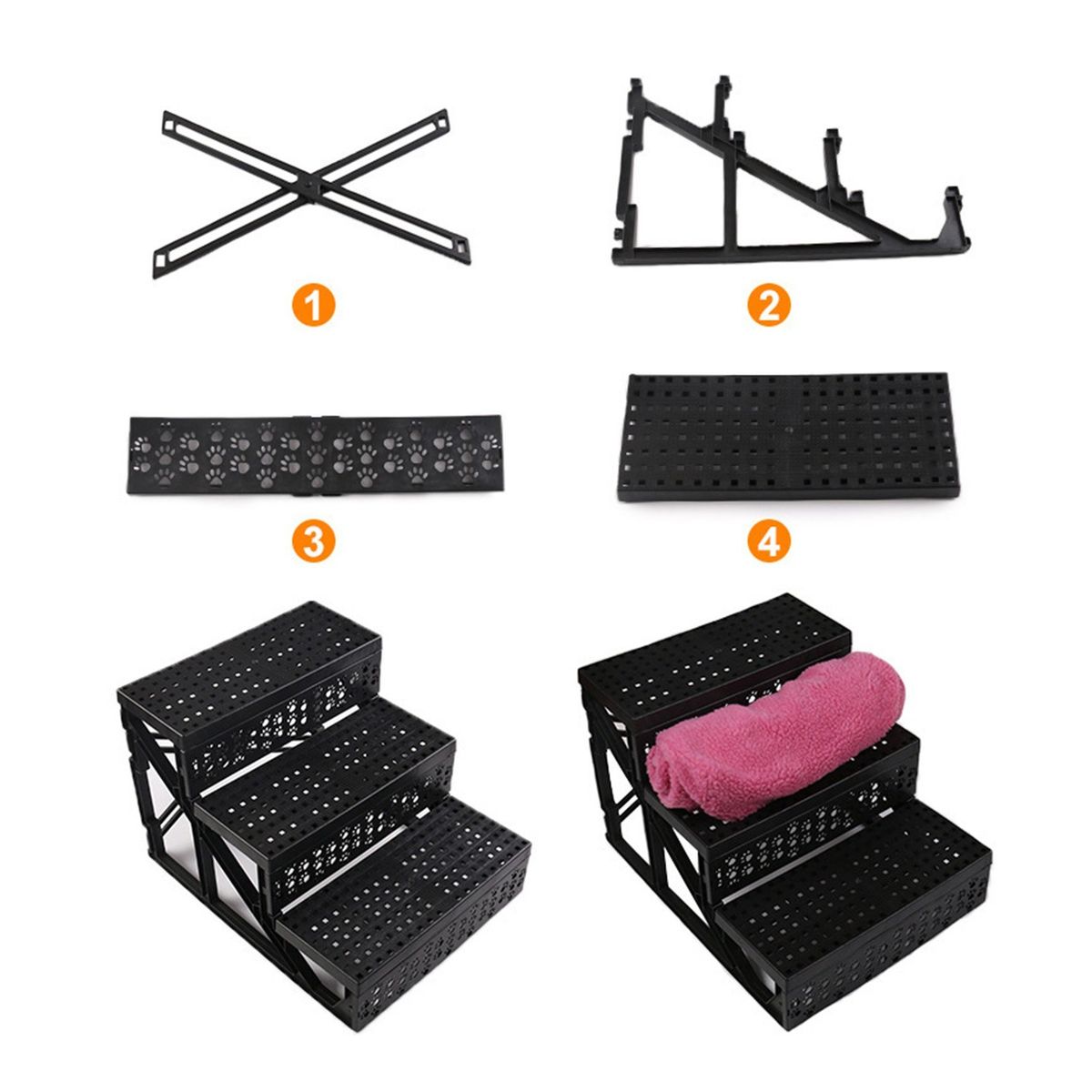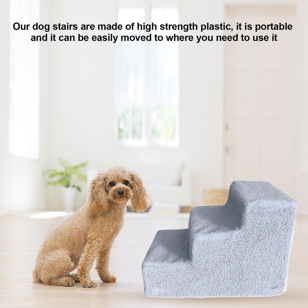 Lightweight and sturdy: Our dog stairs are made of high strength plastic, it is portable and it can be easily moved to where you need to use it.