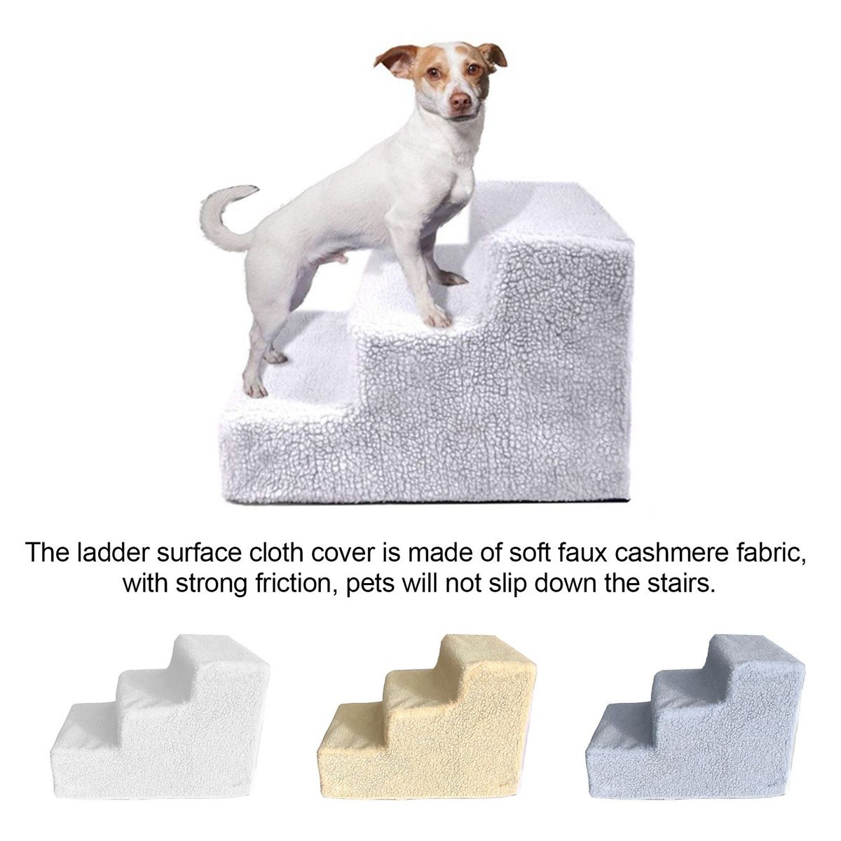 Anti-slip: the ladder surface cloth cover is made of soft faux cashmere fabric, with strong friction, pets will not slip down the stairs.