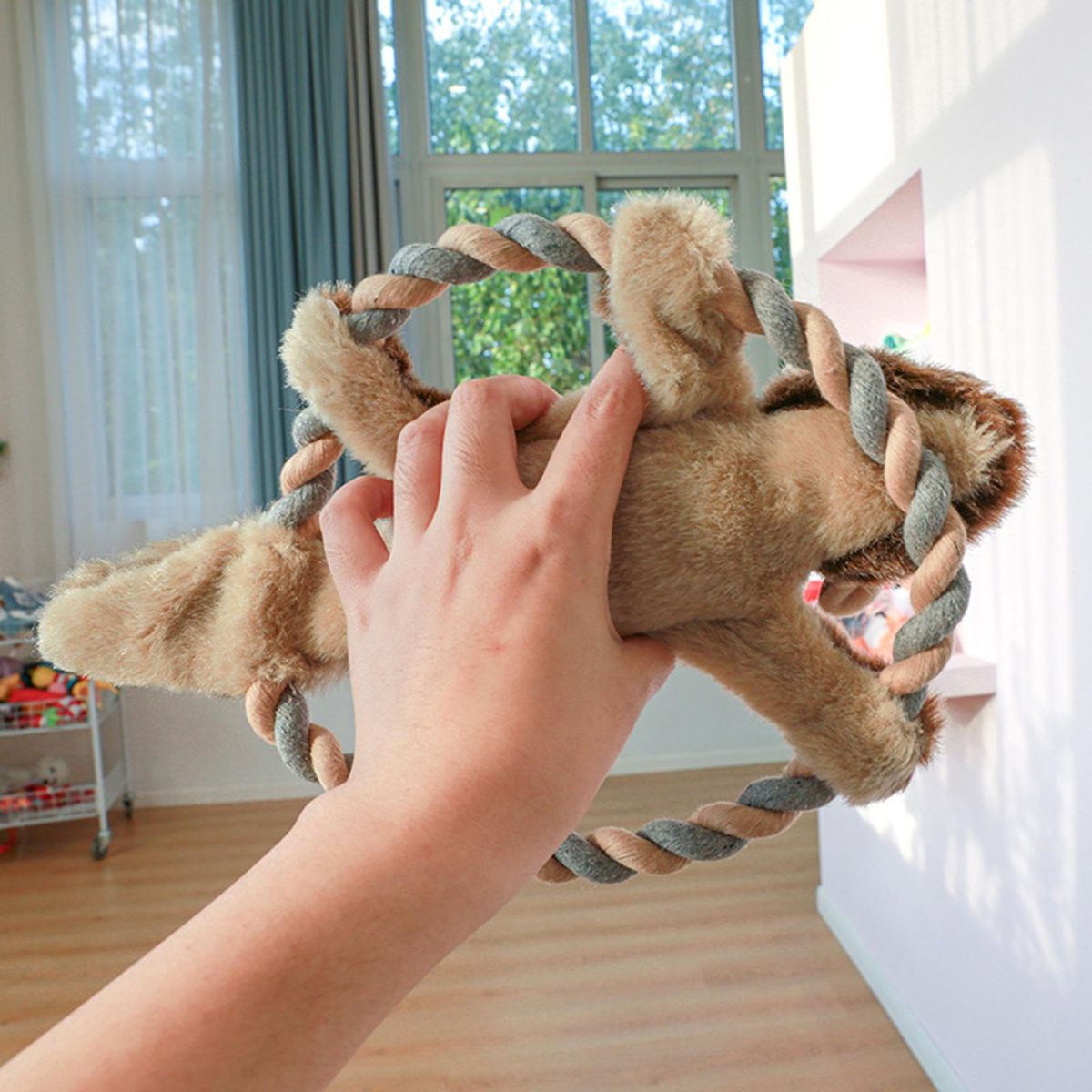 Designed in the shape of a squirrel, rabbit, animal flying disc, this pet toy is cute and realistic. It is plush and filled full, soft, bite resistant and scratch resistant.