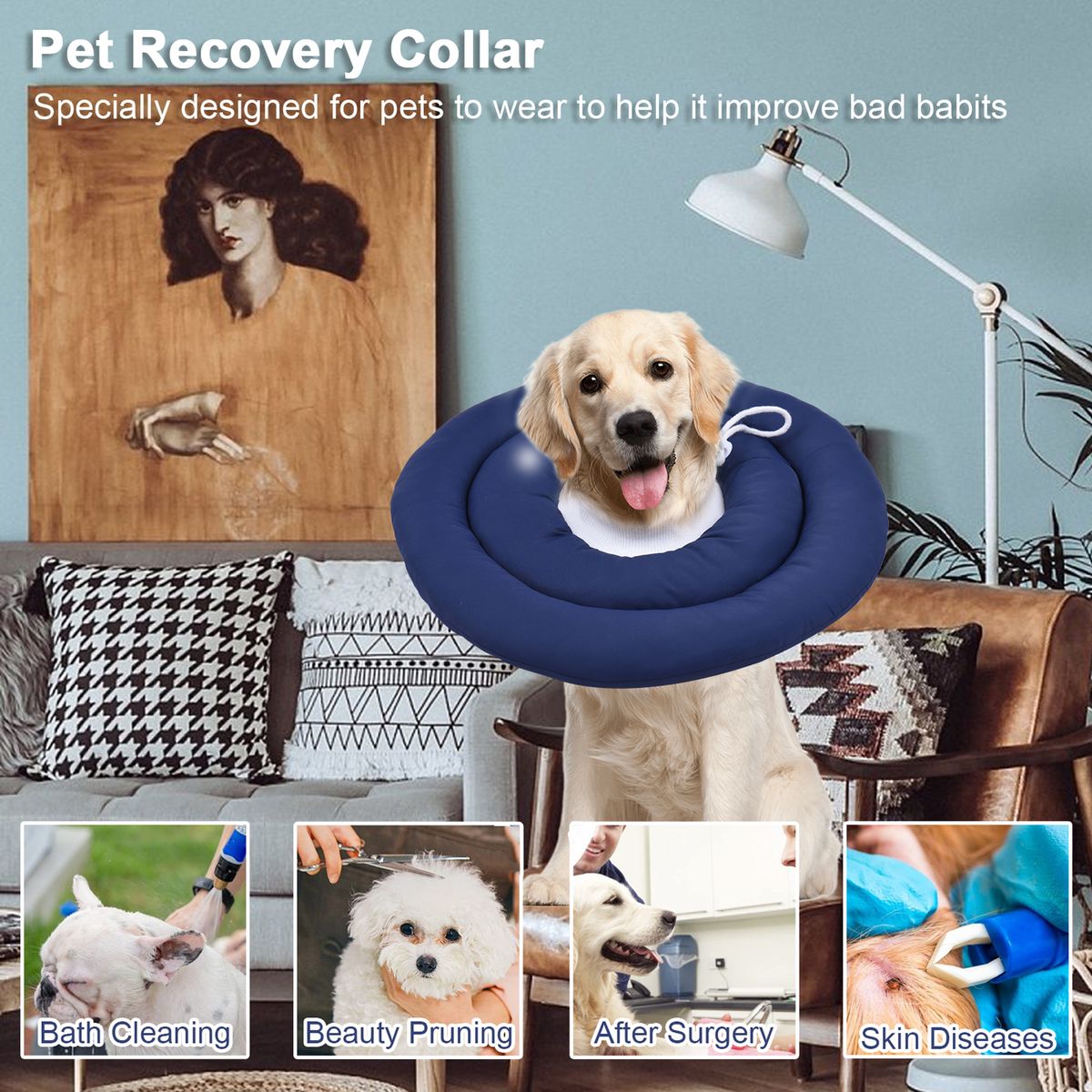 -Our pet recovery collar is the perfect replacement for plastic E-collars, prevent pets from biting and licking injured area to promote recovery from surgery or wounds.