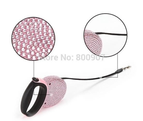 Pet Retractable Leash Pink Rhinestone Bling Crystal Dog Puppy Pet Lead Leash 3M Flat Line-lead Leash-retractable Leash Pet Retractable Leash