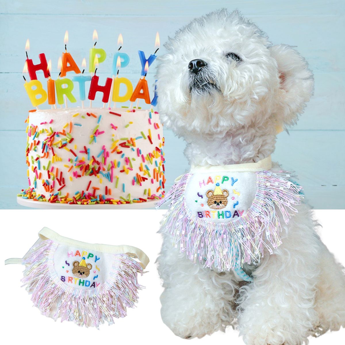 Comes with the characteristics of beautiful cartoon bear print design, the pet bib is unique and easy to match with pet clothes, as well as makes your pet more stand out in the crowd or party. Perfect for wearing it on daily wear, party, vacation and so on.