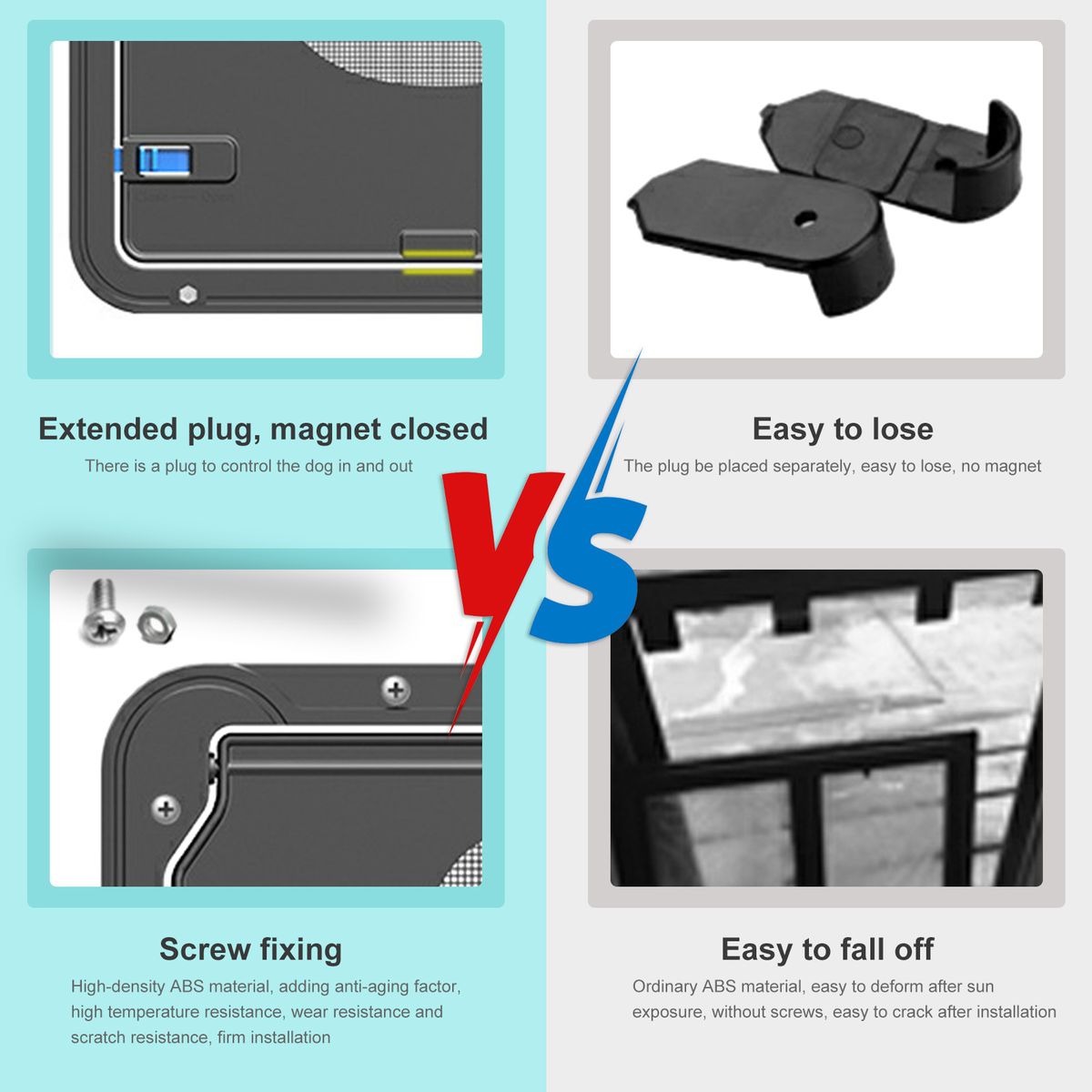 High-quality material: This pet screen door is made of high-quality ABS and nylon mesh materials, durable and strong, not easy to be damaged by your pet.