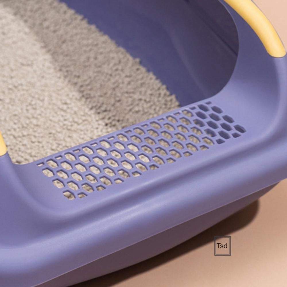 Easy installation: The raised fences on both sides of the litter tray are assembled with clips, which are easy to install and clean, and the entrance becomes low after removal, which is convenient for kittens and old cats to enter