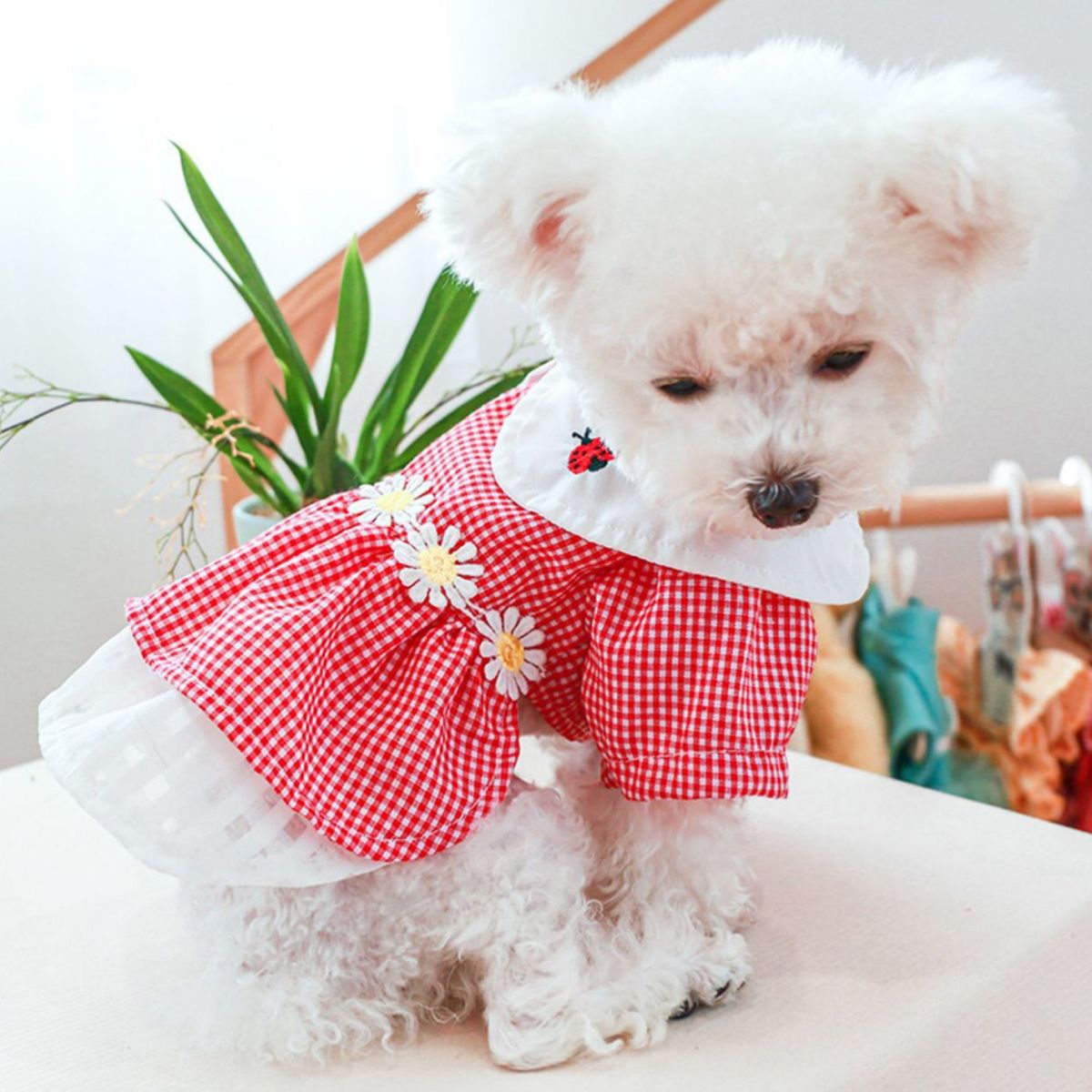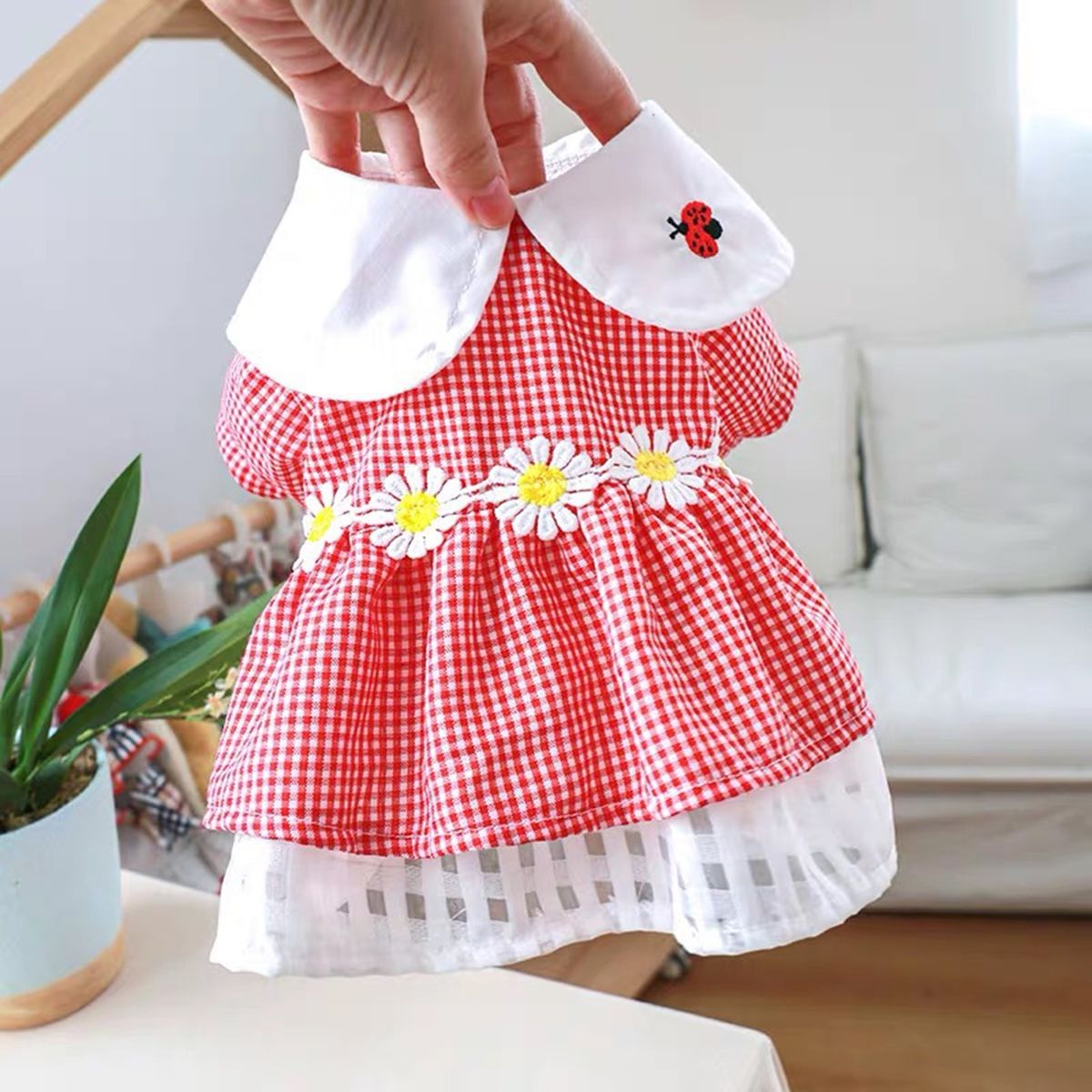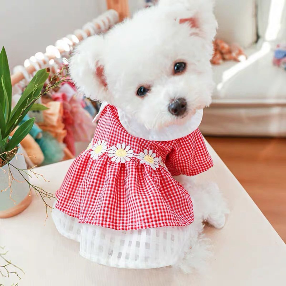 Definitely that this dress with stylish loose lapel collar design and plaid print design make the dog look more elegant and attractive. Soft and elastic lapel collar, the dog does not feel tight when wearing it.