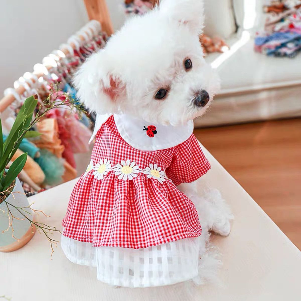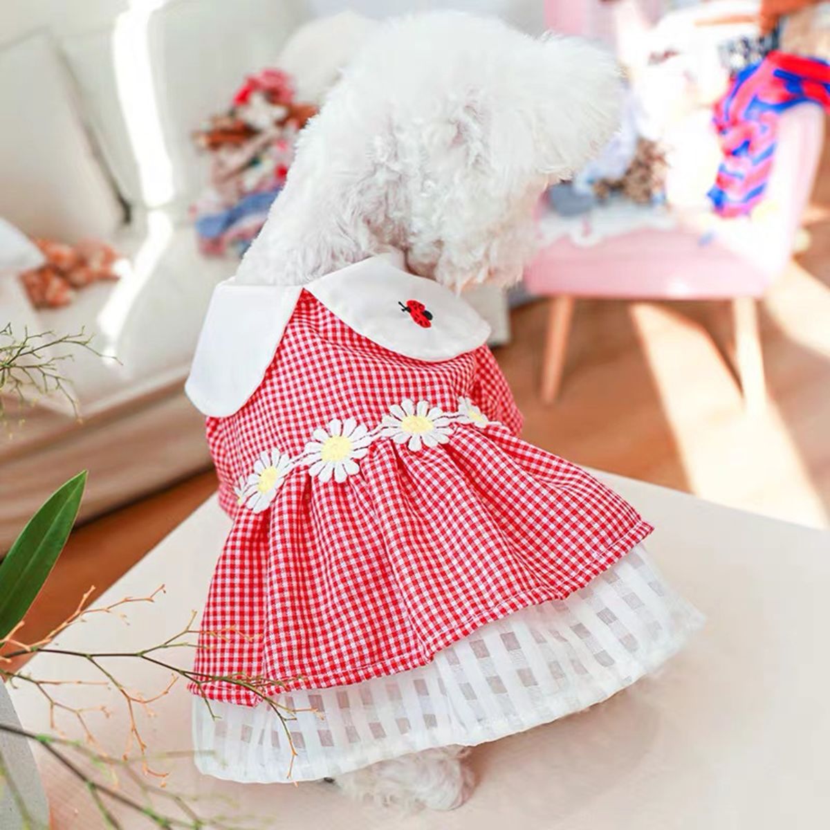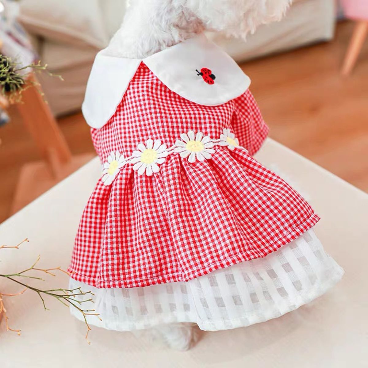 What the pet dress can offer you is that it is soft and elastic pleated hemming, and the dog does not feel tight when wearing it. It makes the dog look more elegant and attractive because of the stylish loose lapel collar design and plaid print design.