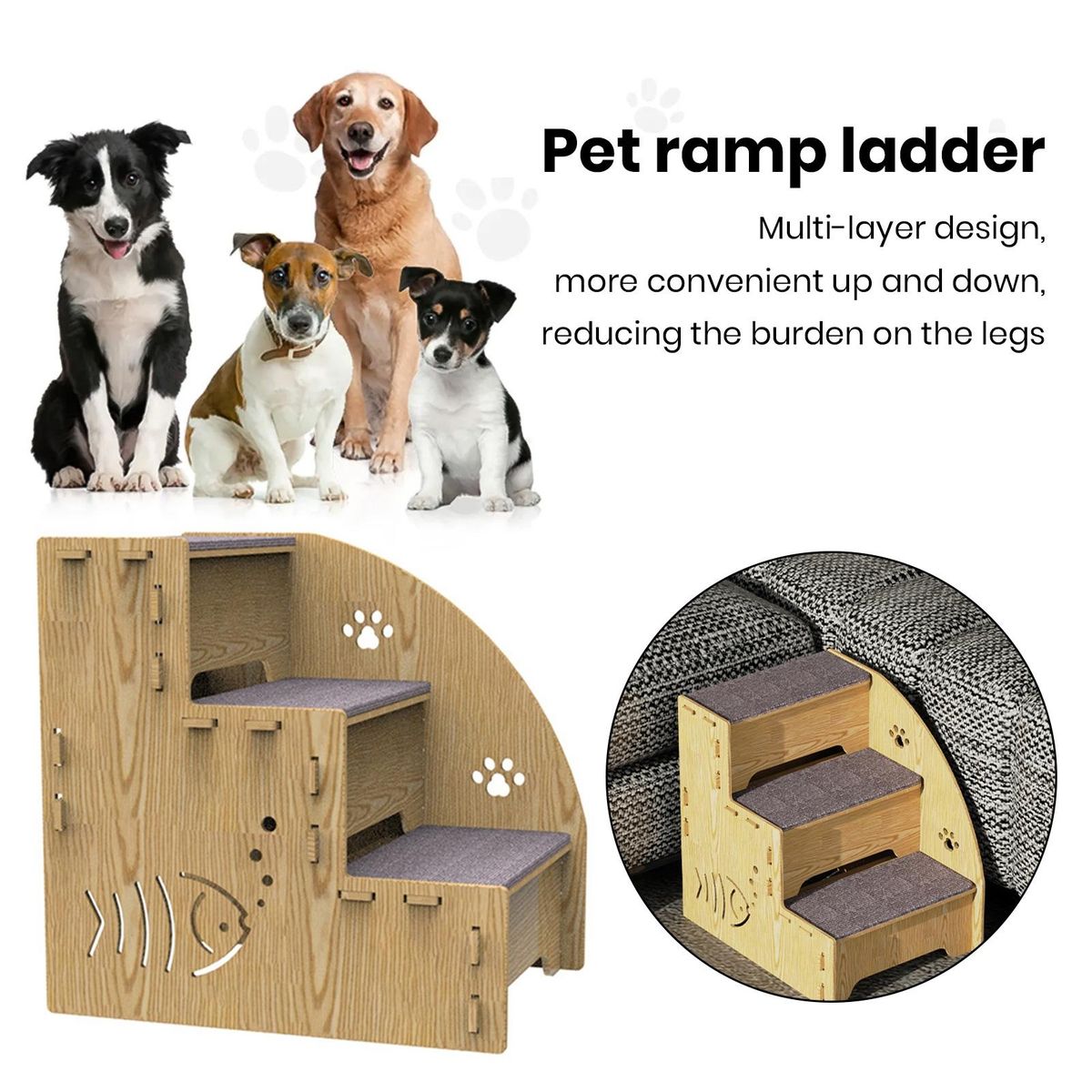 Our pet ladder, the perfect solution to help your furry friends climb up raised beds and sofas with ease. this three-step pet staircase is designed to be easy to install, simply fix each stair step connection to complete the assembly. the multi-layer design not only makes getting up and down more convenient for your pets but also reduces the burden on their legs.