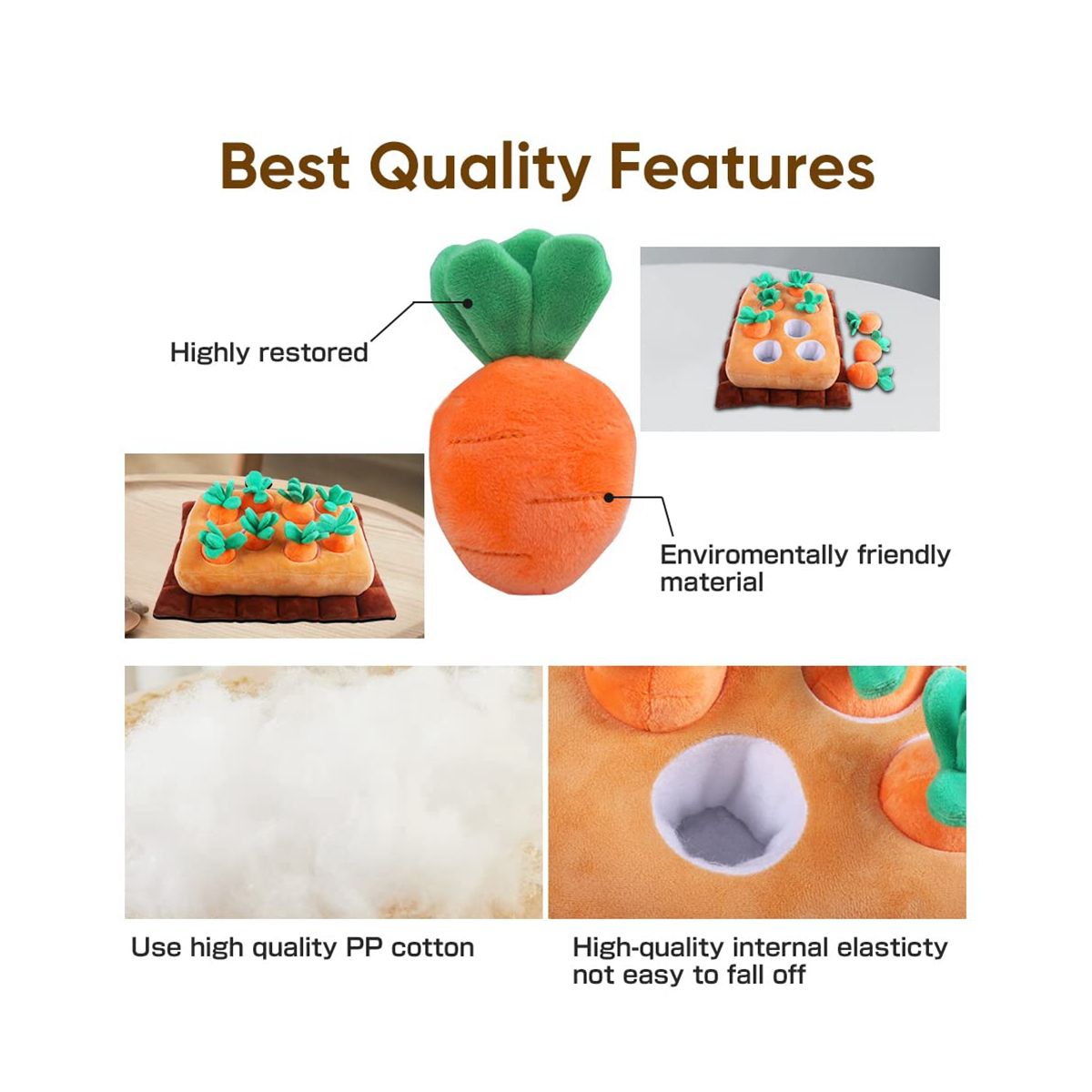 Unique Pattern and Detachable Feature:There are 8 plush carrot toys in the snuffle mat for puppies can be used as 8 small toys to play. The small animal snuffle feeding mat with colorful appearance, practical feeding function will your pets both and mental health.