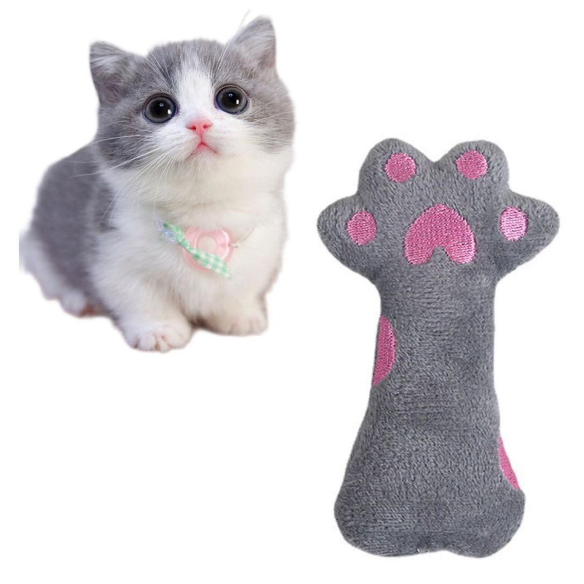 The pet plush toy is bite resistant and not easy to deform. And it can draw a lot of attention of your kitten with cartoon paw shape and built-in sound device.