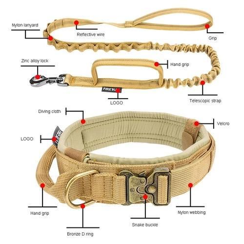 Pet Tactical Collar Traction Rope Outdoor Training Pet Supplies Quick Release Dog Collar Nylon Training Leash-Sets