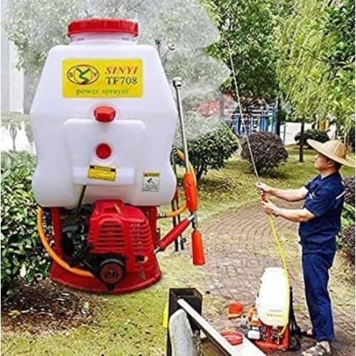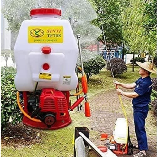 factures:fan roatation speed 8500(r/m)tank capacity: 20ldisplacement: 25.4standard power: 0.7kw/6500-7500r/minmixed fuelmratio: 20-25:1working prssure: 10-30kgf/cm2spray pump type: a high presssure pumpfuel tank capacitywater absorption:10l/minsray amount: 8l/minbrand new petrol engine poweredspryare type; knapsackcylinder: 2 strokechemical resistanttool kit with an operational maunelNozzle: Each sprayer three head nozzle flower nozzleLess fuel consumptionprovided with a sturdy frame and a heavy duty HDPE backrest with a standard cushion and shoulder strap with cushionit can be used to spray fruit tree more than four meter high due to its high pressure on nozzle that allow for adjustment of pressurethe poer sprayer can help farmer minumized chemical wasteage and save on time.it discharge seven to 10 liters of chemicals per minutes