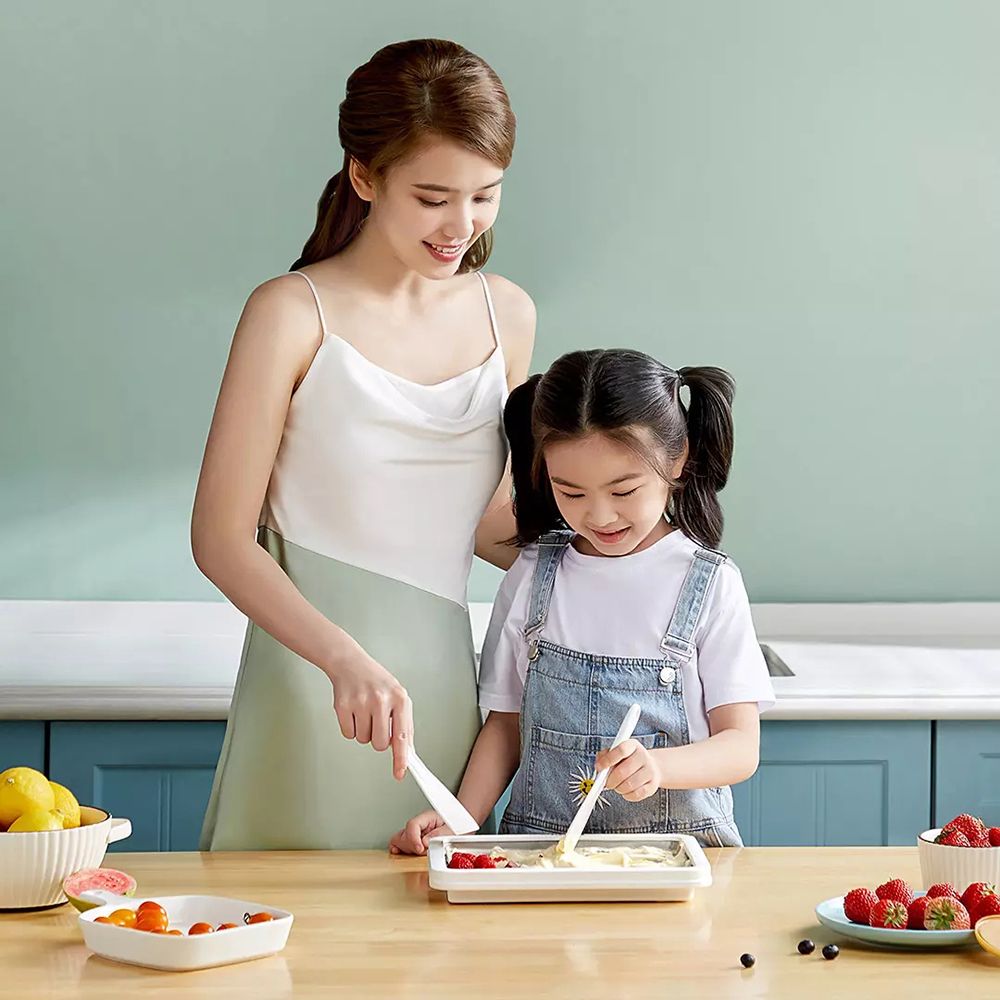 Easy to use - Place the pan(Cooling side facing down) in the freezer for 12 to 24 hours before using, and put your mixture onto the tray waiting for 1-2 minutes then roll your ice cream off with the spatula.