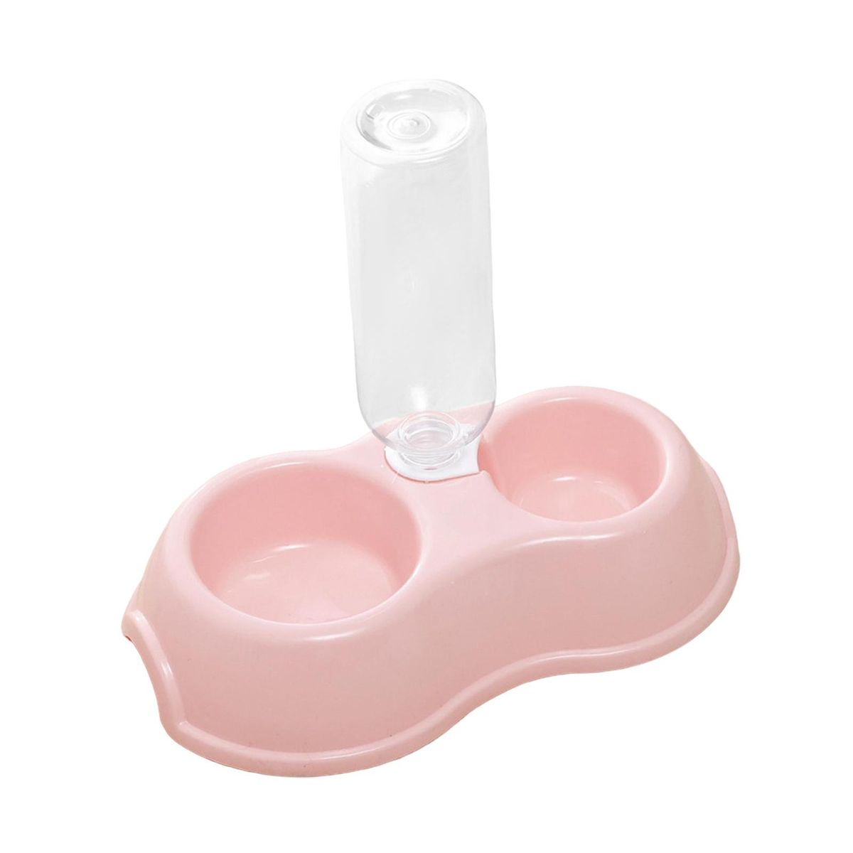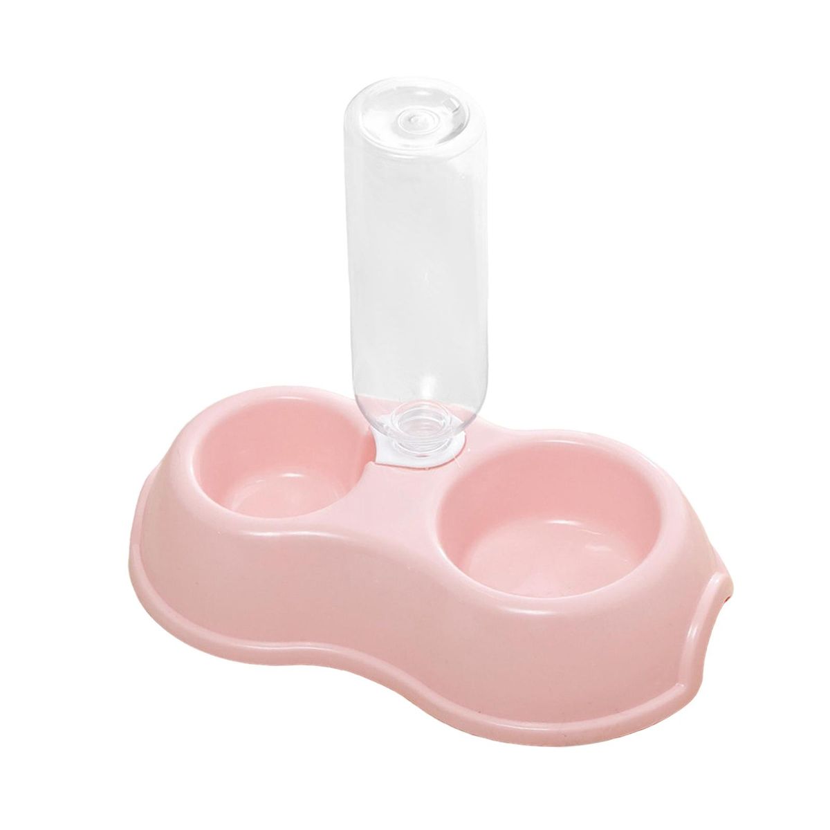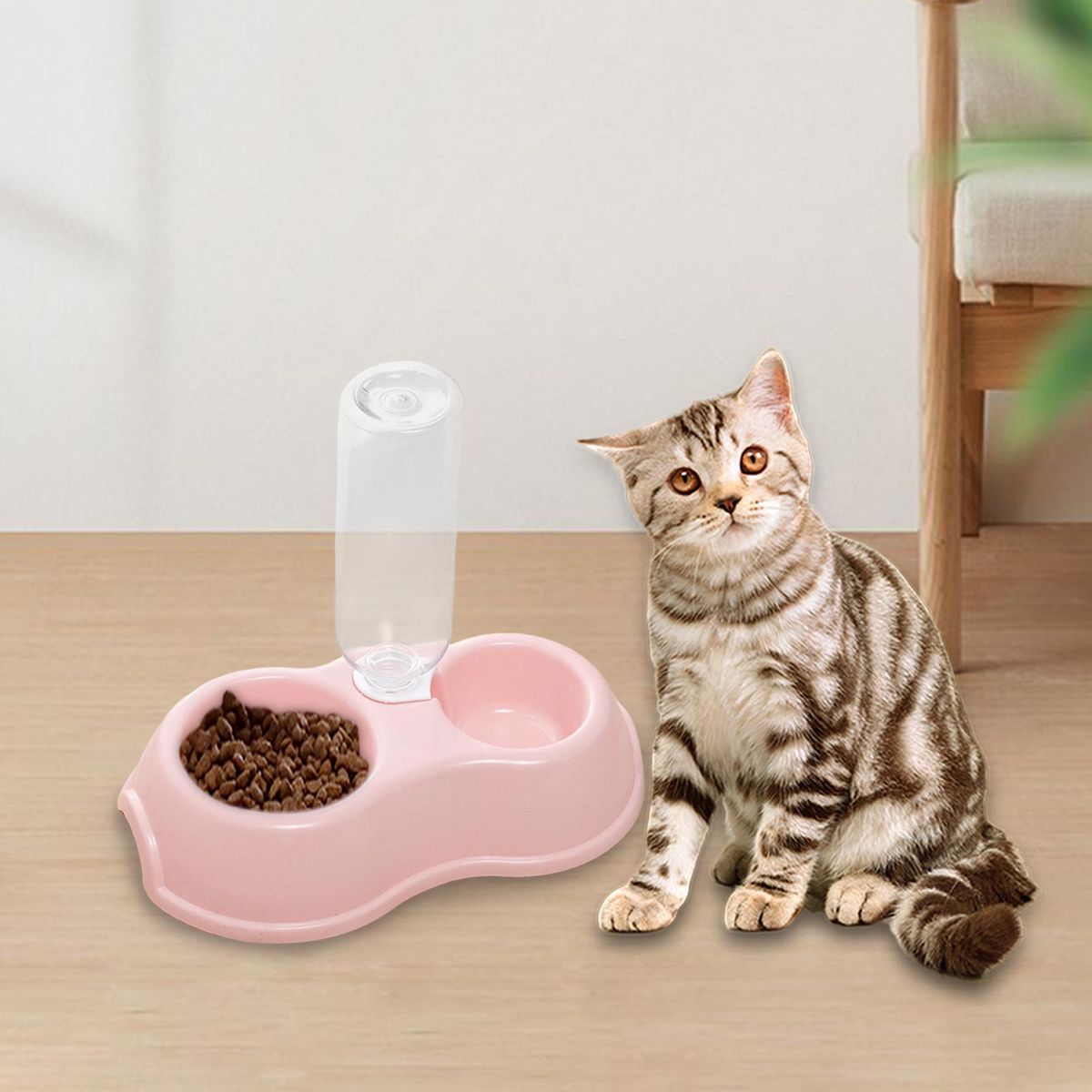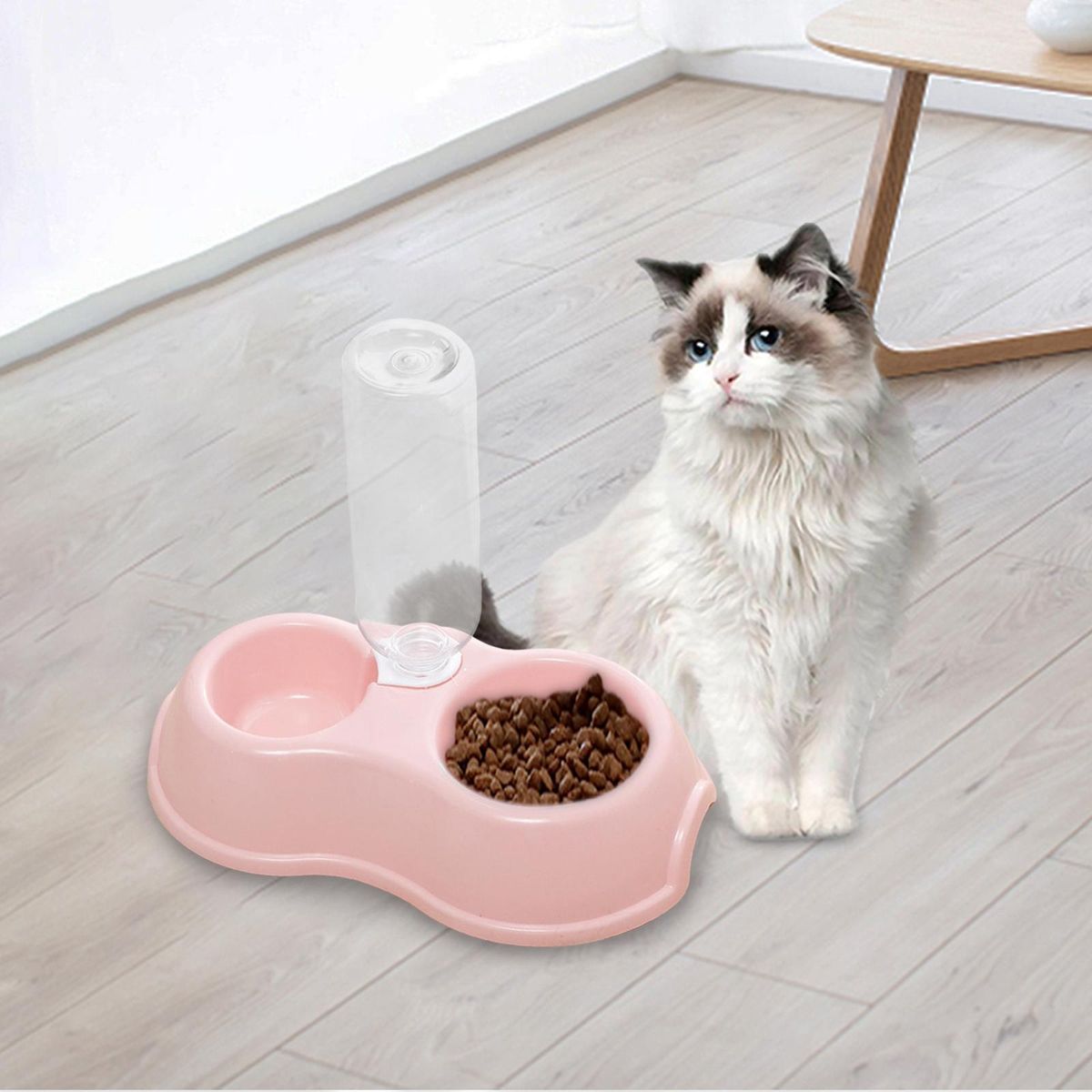 Double Bowls with Automatic Drinking Bottle: 2 in 1 feeder bowl. a bowl for food, and another bowl with the automatic water bottle for drinking. It will refill the water in the water tank automatically and keep the water clean whether you are at home or not