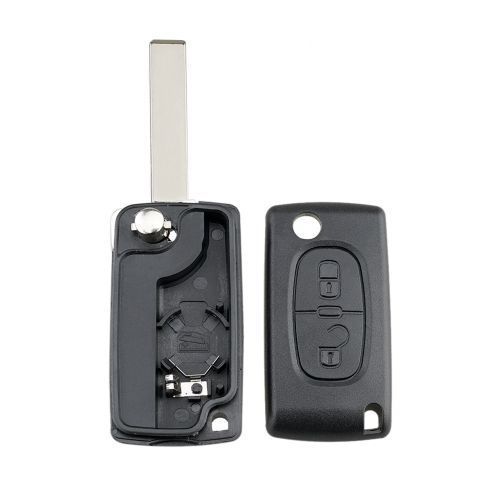 For PEUGEOT Car Keys Replacement 2 Buttons Square Car Key Case with Grooved and Holder