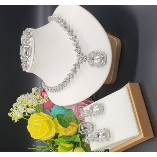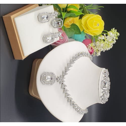 Buy P&G Classic Studed Beautiful Silver Necklace And Earrings Set in Nigeria