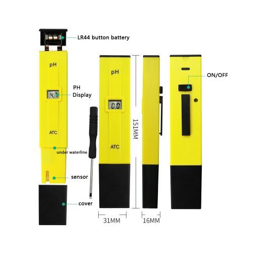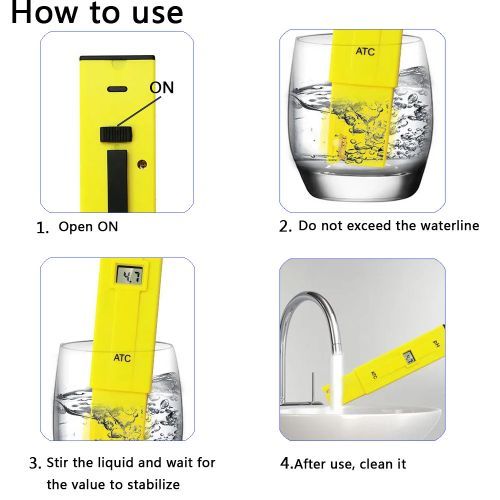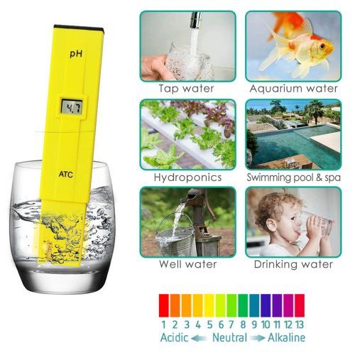 Description:1.High Accuracy:ph tester has a sensitive electrode sensor ,simply press "ON", It only takes a few seconds for your result to appear on screen.read accurate pH levels. The included detailed manual will show you how to get the best accurate and stable reading..2.Automatic Temperature Compensation:No more need to take care about the temperature of testing water,as the Ph Meter Has an Auto Temprature Compensation Feature That Adjusts to Water Temperatures and Water Quality.3.Family Essentials:As a tool to improve the quality of life. Can be used to test drinking water, swimming pools, PH balance in aquarium, RO system, spa or hydroponics. Basically all the environments that need to test PH value can use this tester to get accurate data.