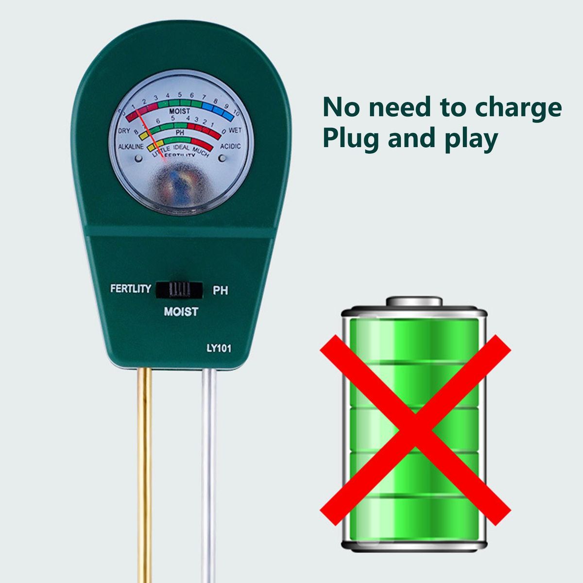 It is suitable for gardens, homes, yards, orchards, outdoors, etc. It has a probe inserted into thefor more than 2/3 of the time and can be read in about 3 seconds.