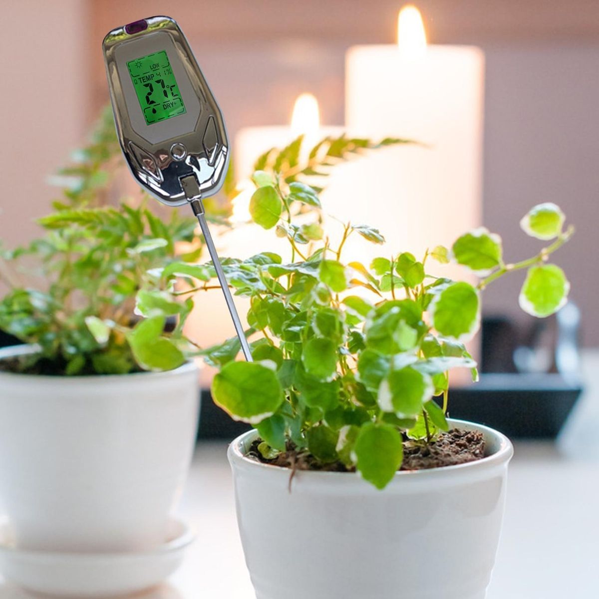 Adetector adopts 5-in-1 design, which can detect illumination, pH,temperature and humidity, and environmental humidity. It has a large digital screen, which is convenient for reading data.