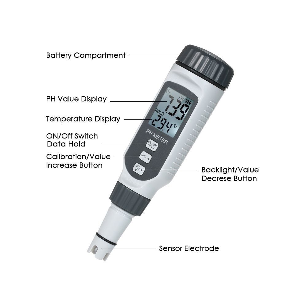 Testing Range: pH: 0.00~14.00pH, TEMP: 0℃ ~ 60℃