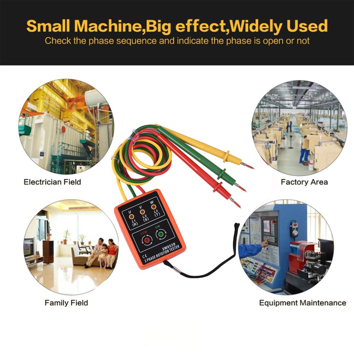 With high performance, the phase tester can check a large of range of AC three-phase(60V~600V).