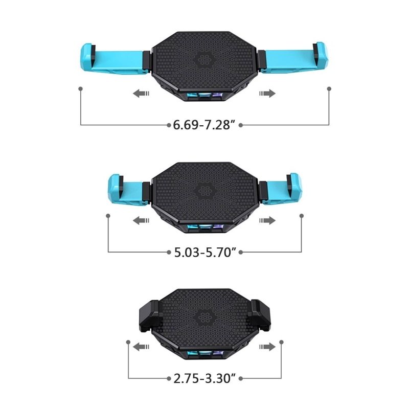 Semiconductor Frozen Radiator for Tablet Mobile Phone Pad Mini High Tech Turbo Fan Fast Cooling Big Wind Double Cooling H8WD Features: and high quality Tablet mobile phone 2 in 1 semiconductor quick-cooling radiator, black technology semiconductor + big wind double cooling. Quick-release structure design, 3 kinds of clamps with different lengths, easy to replace, convenient and fastTurbo fan, accelerated cooling. Ring-shaped air door cooling design, large heat diipation area, faster cooling speed, power-driven semiconductor refrigeration, and then driven by the fan to blow air to the body to achieve rapid cooling. Large heat diipation area, faster cooling, power drive semiconductor frozen refrigeration is then driven by the fan to blow the air to the body to achieve rapid cooling Premium high quality silicone, stable, shock absorption. Silent fan, machine lightweight portable. Cool light effect, no need to charge, plug and play. Specifications: Material: ABS+Zinc Alloy Cooling Principle: Semiconductor Refrigeration + Turbo Fan Color: Black Interface: USB Type: for Mini and Phone / for Tablet and Phone (Optional) Weight: 155g Item Size: approx for Tablet 6.69-7.28in ; for Mini 5.03-5.7in; for Phone 2.75-3.3in Package Includes: 1PC x Radiator 1PC x Manual Note: MINI + Phone package for machine width: 7-8.4cm / 12.8-14.5cm Tablet + Phone package for machine width: 7-8.4cm / 17-18.5cm Due to the probl of lighting effects and shooting angles, there will be certain tolerances in the product, please understand. Please allow 0-1cm error due to the manual measurment.