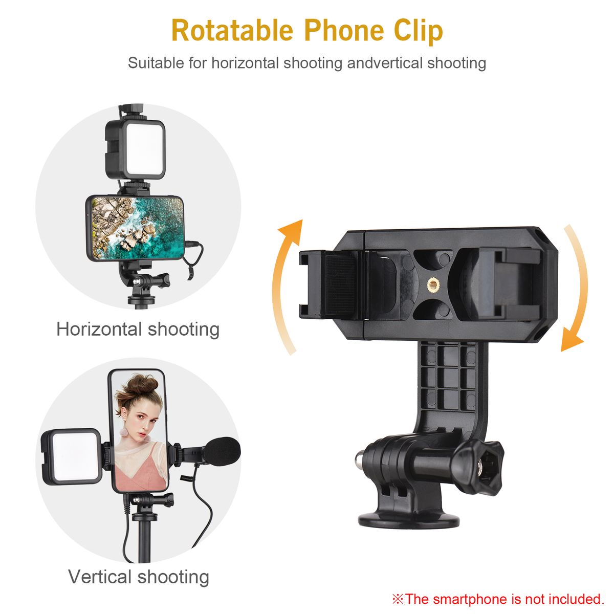 [Rotatable Phone Clip] Equipped with a extendable and rotatable phone clip of high quality, length can be adjusted from 6.5cm to 9.5cm, compatible with most smartphones on the market, easy and quick to adjust shooting angles, suitable for horizontal shooting and vertical shooting.