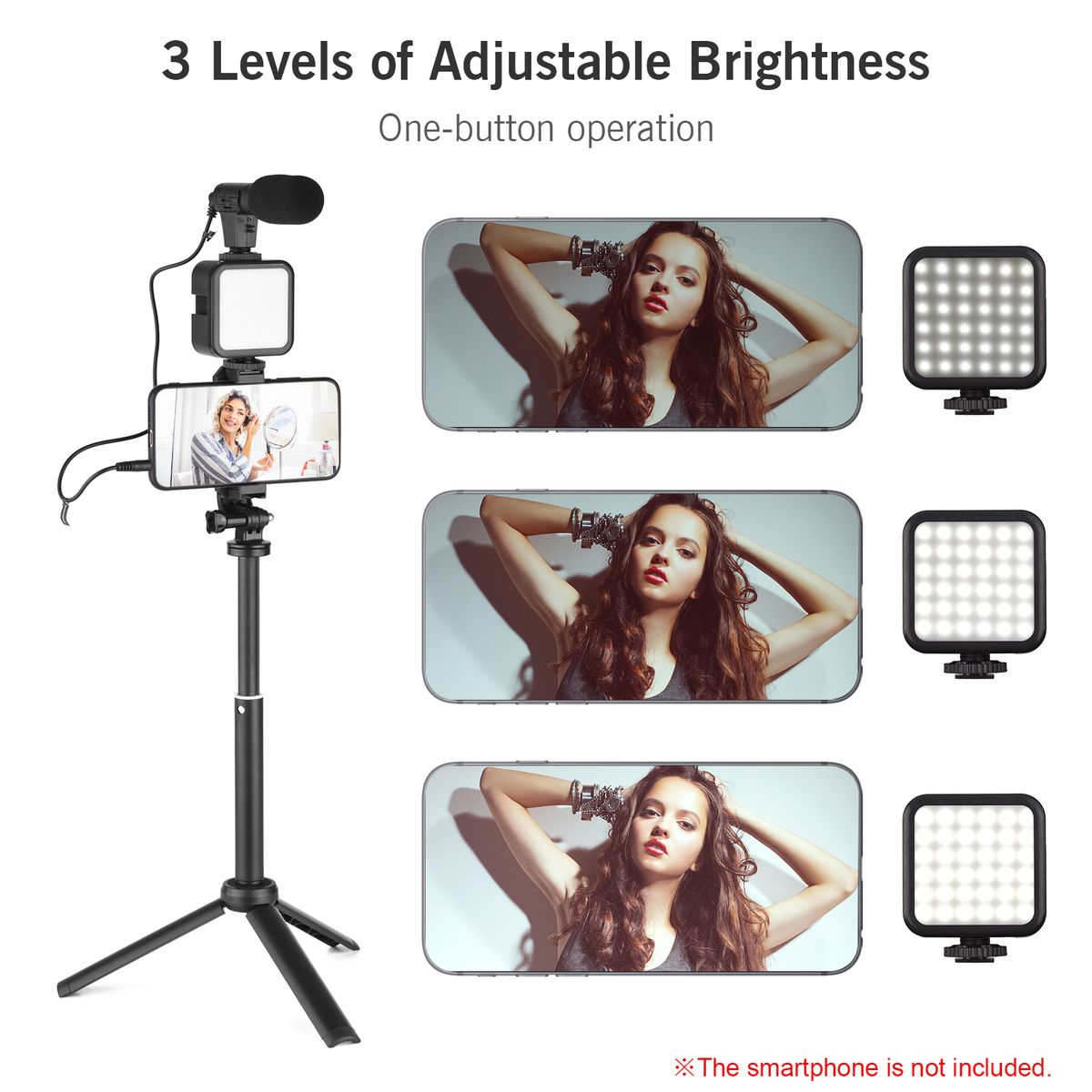 A nice Vlog kit with mini LED video light, condenser microphone, adjustable phone clip, and mini tripod, the light is bright with 3 levels of adjustable brightness, perfect for live streaming, Vlog video recording, selfie, and more. Come and buy it now, it will surely bring you great using experience!
