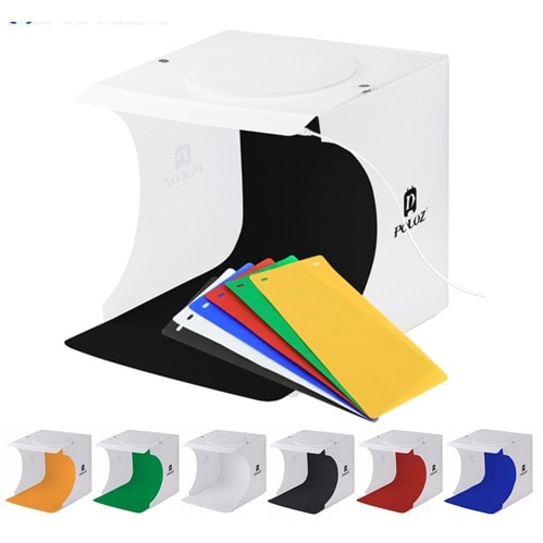 Puluz 25Cm Foldable Led Ring Light Studio Box With 12 Background Colors and 3 color temperature.