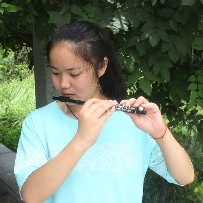 A stick help and cleaning cloth keep piccolo dry and clean.