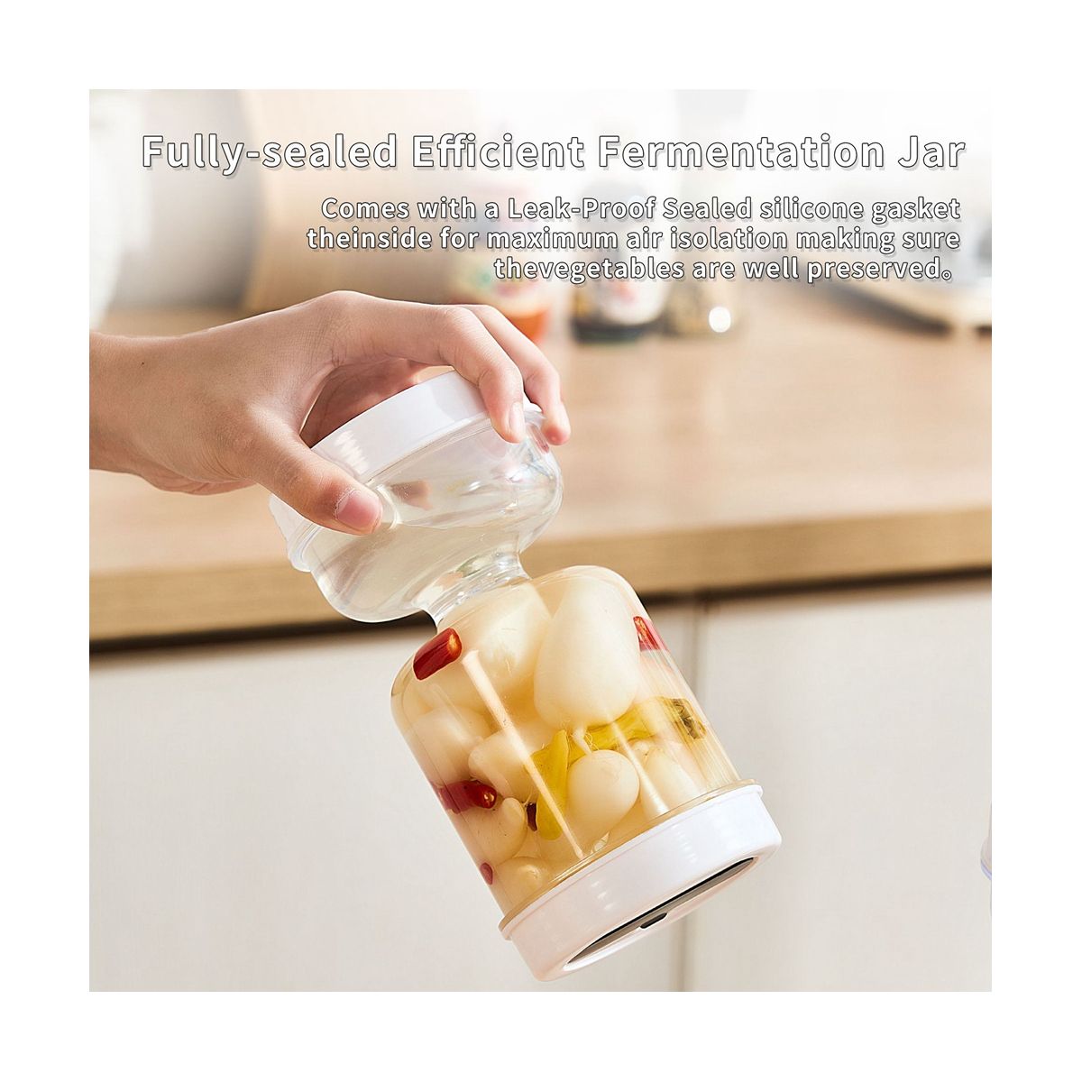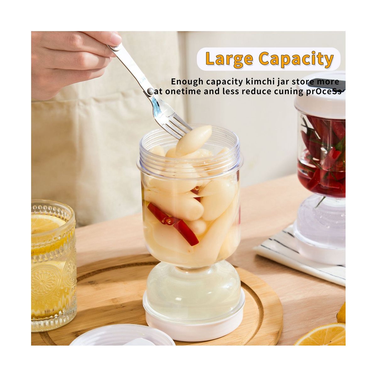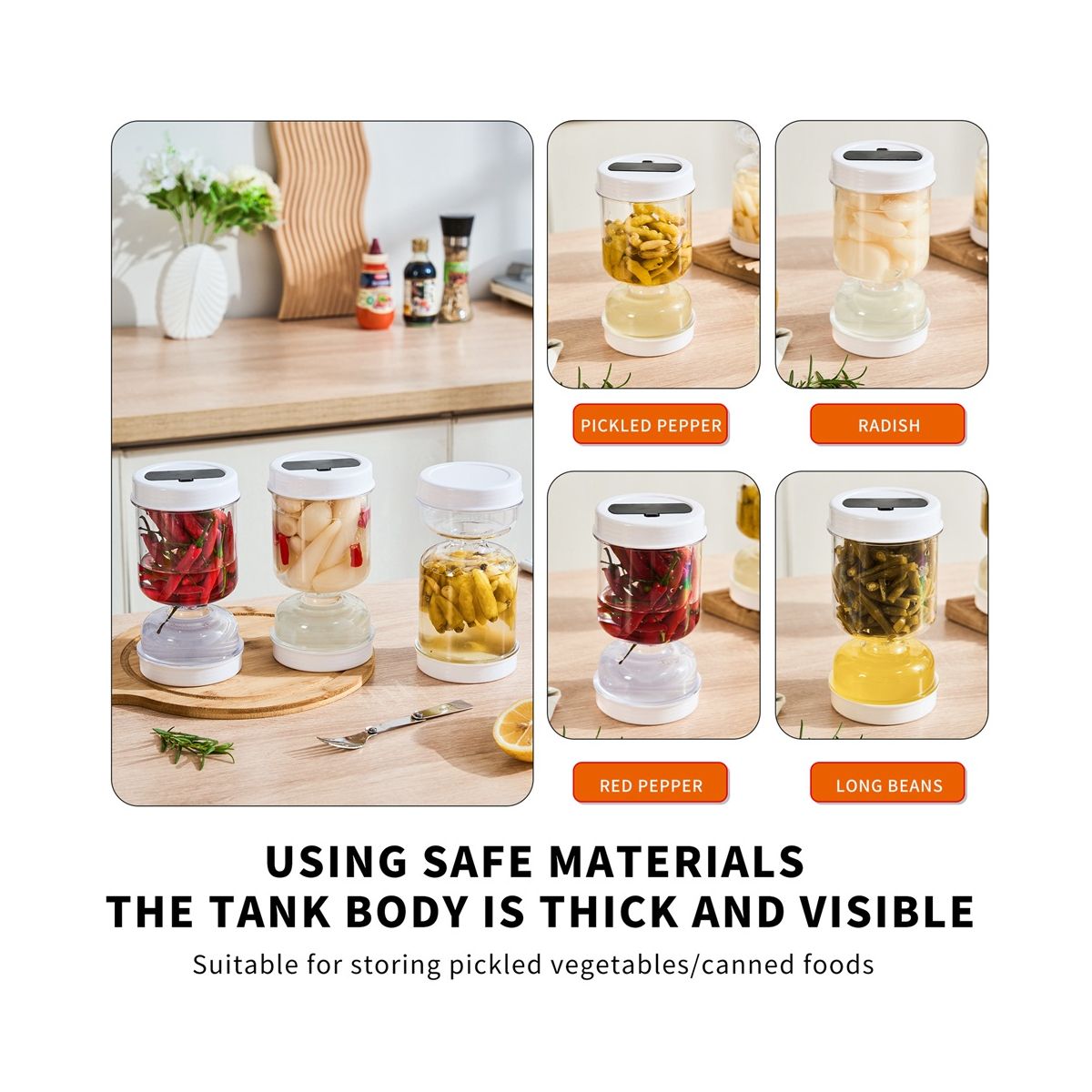Pickle Jar is designed to separate liquids from food. The container at the top is connected to the lower container through a narrow opening, this design allows the liquid to flow to the bottom while the food stays at the top.