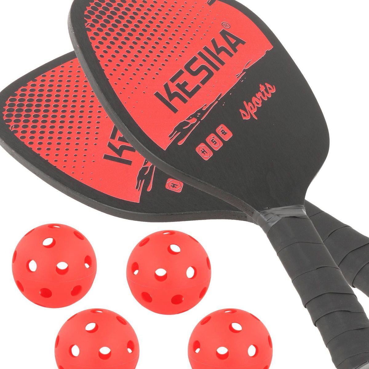 Package include 2 pickleball paddles, 4 pickleball balls and 1 storage bag which is portable and easy to carry.Material: Our pickleball paddles are made of high quality poplar wood and has a nonslip design for a comfortable feel.Edge: Low profile Edge with high durability protects the paddle hitting surface and core against court damage,yet slim enough to reduces mishits.For All Ages: Pickleball is an activity suitable for all ages.