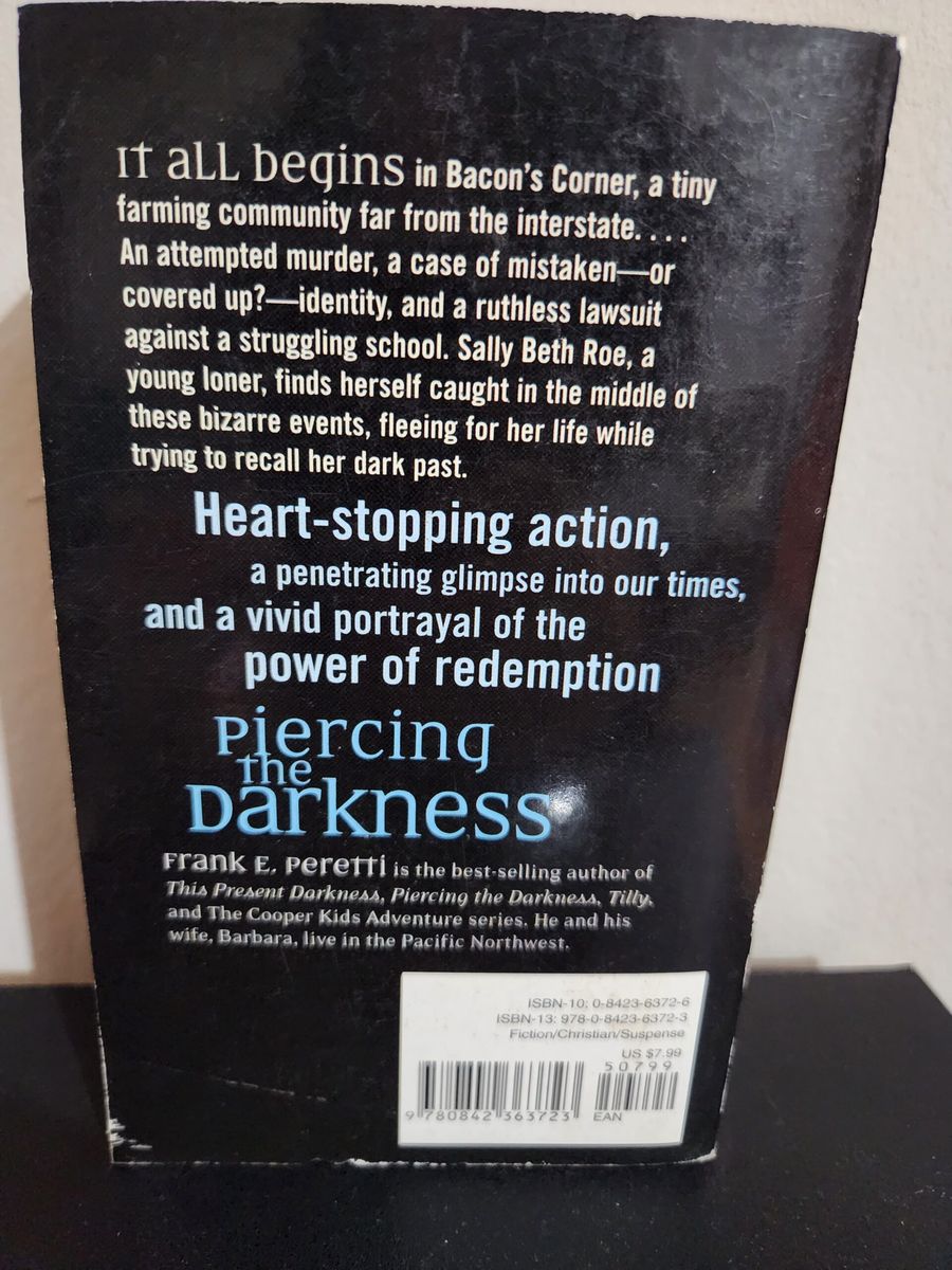 It all begins in Bacon's Corner, a tiny farming community far from the interstate...An attempted murder, a case of mistaken - or covered up? - identity, and a ruthless lawsuit against a struggling school. Sally Beth Roe, a young loner, finds herself caught in the middle of these bizarre events, fleeing for her life while trying to recall her dark past. Heart-stopping action, a penetrating glimpse into our times, and a vivid portrayal of the power of redemption. Leaders in the realm of darkness have mounted a new attack that will create chaos and cause defeat in the human beings who claim unity with their enemy, Christ. Readers will find themselves rooting for a most unlikely hero as her quest for inner peace exposes the most frightening war of all, the battle for the human soul. Be captivated anew as you enter the world of battling angels and demons that author Frank Peretti so masterfully uncovered in This Present Darkness.