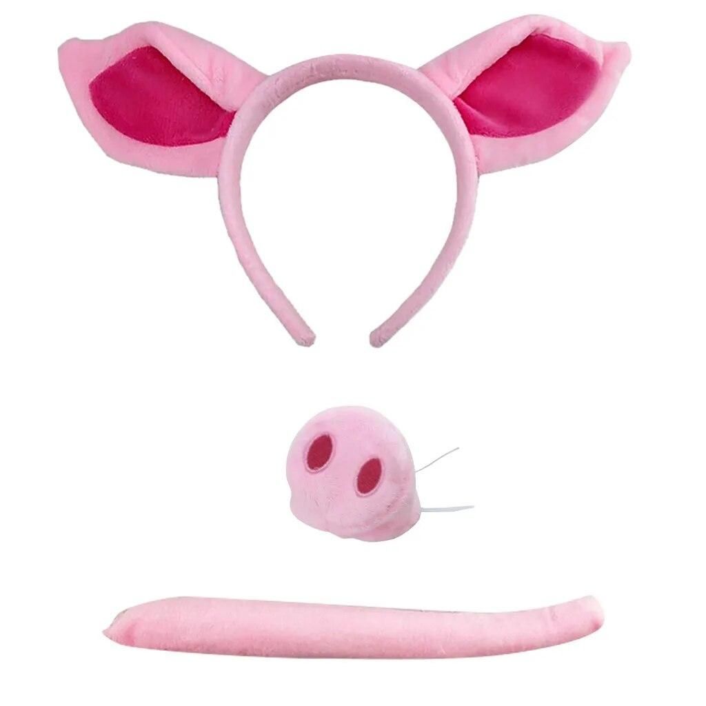 Buy Pig Headband Ears And Tail Set Cosplay Costume Pink Pig Ear Headband Nose Tail Halloween Animal Headdress Dress Up Accessories in Nigeria