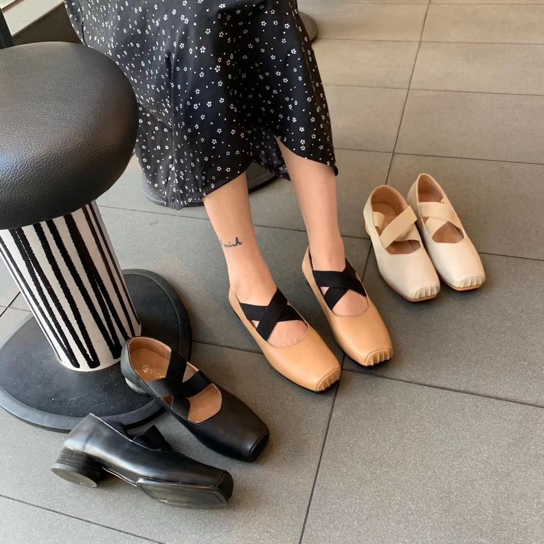 Buy Pig Nose Square Head Ballet Shoes Flat Bottom Female Cross Strap Mary Jane Single Shoes Thick Heels in Nigeria