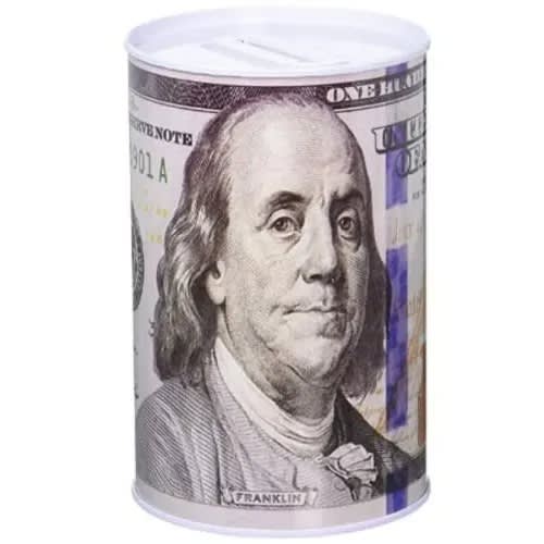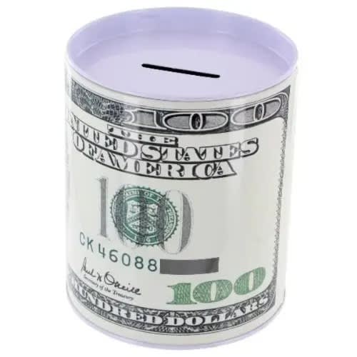 $100 Canada dollar bill decoration wrapped around tin