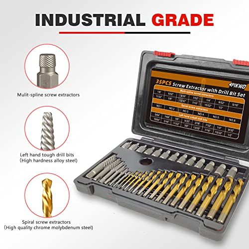 - 35-PIECE Extrator/Drill Bit Set: 13ps most ommonly used multi-spline srew extrators,and 16ps tough left hand obalt drill bits,6ps ral srew extrators.