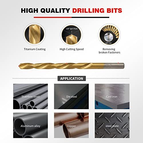 - HSS with Titanium Nitride Coating Drill Bit:135 degree split point and twist design inreases utting speed with self-entering and prevents walking, lears hips and partiles faster.NOTE: Cobalt drill bits should not be used for stainless steel.
