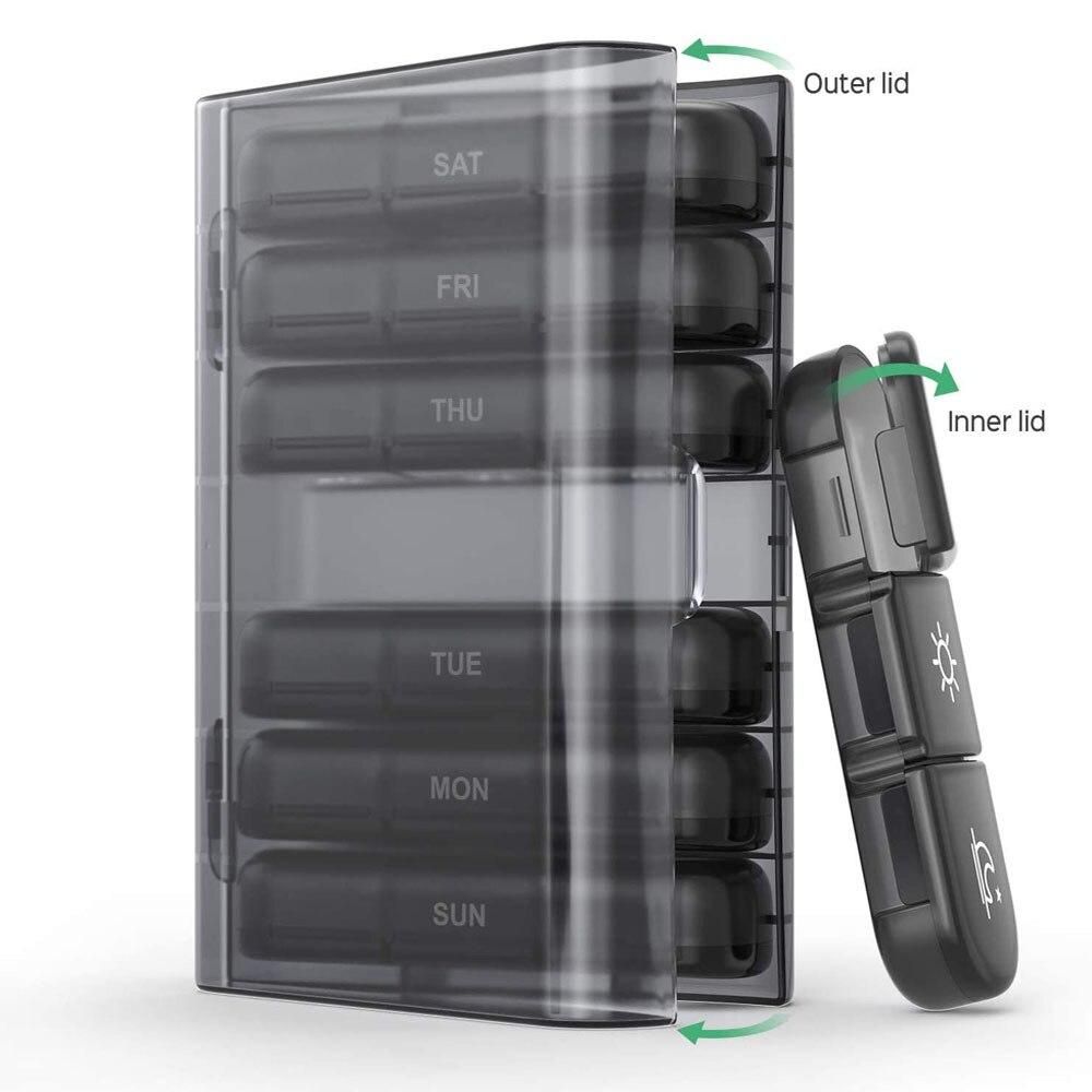 Item: pill box 7 days Organizer 21 grids 3 Times One Day Portable Travel with Large Compartments for Vitamins Medicine Fish Oils
