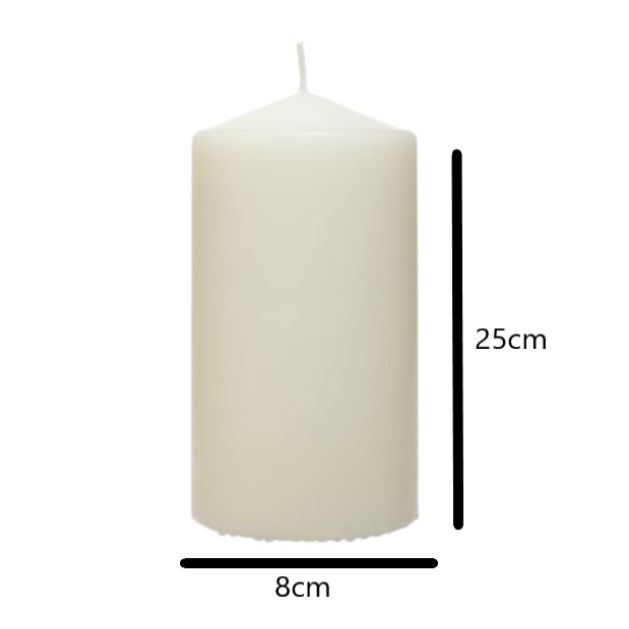 Our unscented solid wax altar candles are made from the highest quality wax to deliver a bright, clean, smokeless and non-drip burn. This white pillar candle is perfect for adding glamour to weddings and for lighting up your home and garden.