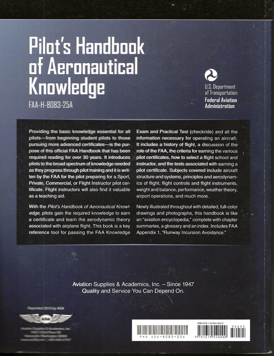 This official FAA handbook has been required reading for more than 30 years. Providing basic knowledge essential for all pilots—from beginning student pilots to those pursuing more advanced pilot certificates—this book introduces pilots to the broad spectrum of knowledge needed as they progress through pilot training. Studying this book, pilots gain the required knowledge to earn a certificate and understand aerodynamic theory associated with airplane flight.