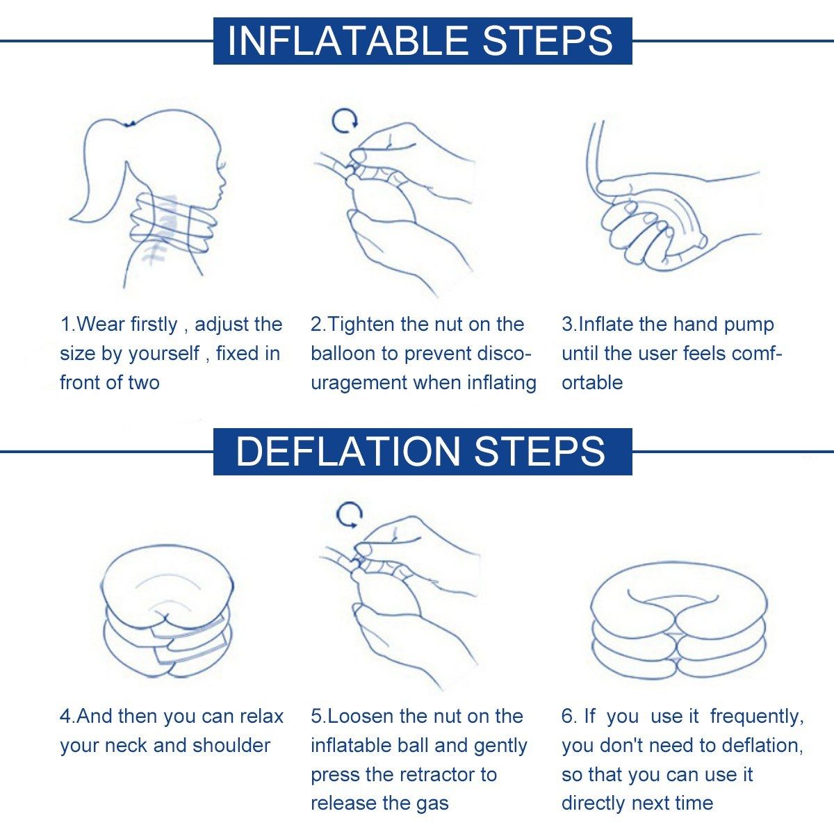 Rapid Inflate amp; Deflate -- 3 inflate tube connected neck cushion controlled by a handy bulb pump, which is 3 times fast then the usual single tube neck traction collar. Handy pump with a quick release button for quick air release.