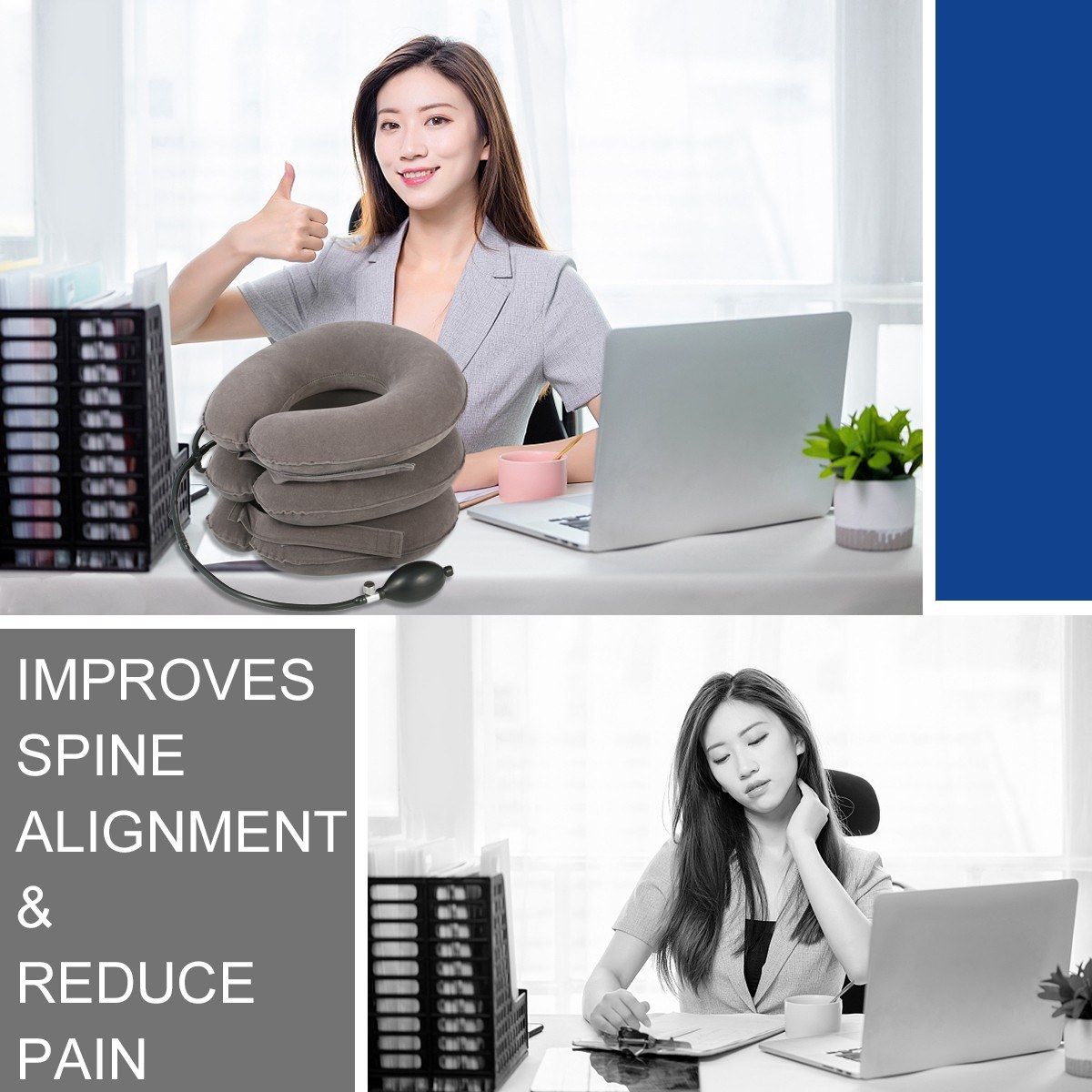 Portable Neck Traction Device -- Our air inflatable U neck pillows can go with you everywhere! Use in the car, at work, or at home. Pillows completely collapse for easy storage or portability.